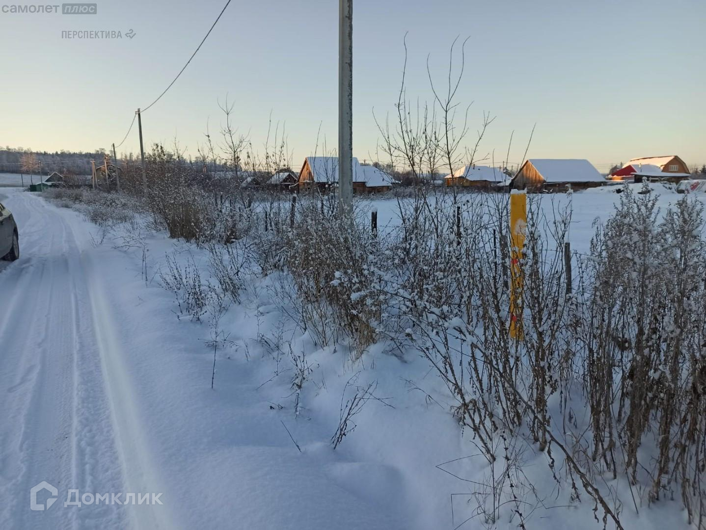 Участок огорожен. Газ и электричество проходят по улице.