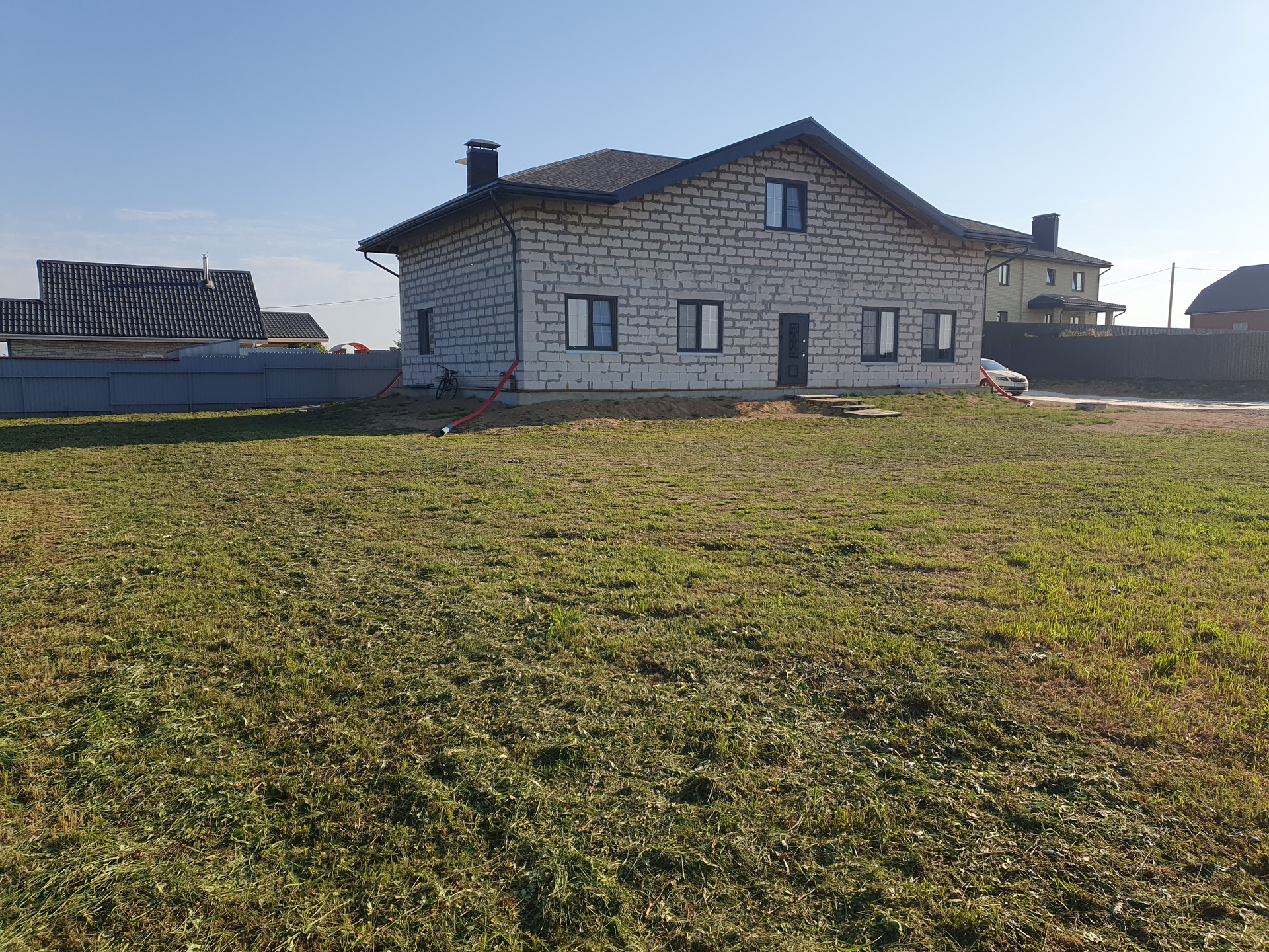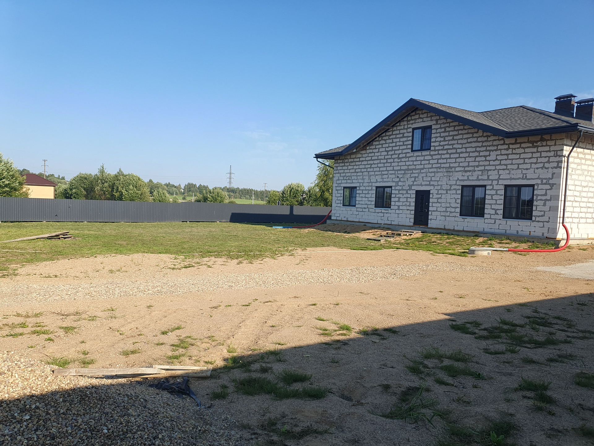- Установлены въездные ворота, периметр огорожен красивым забором.