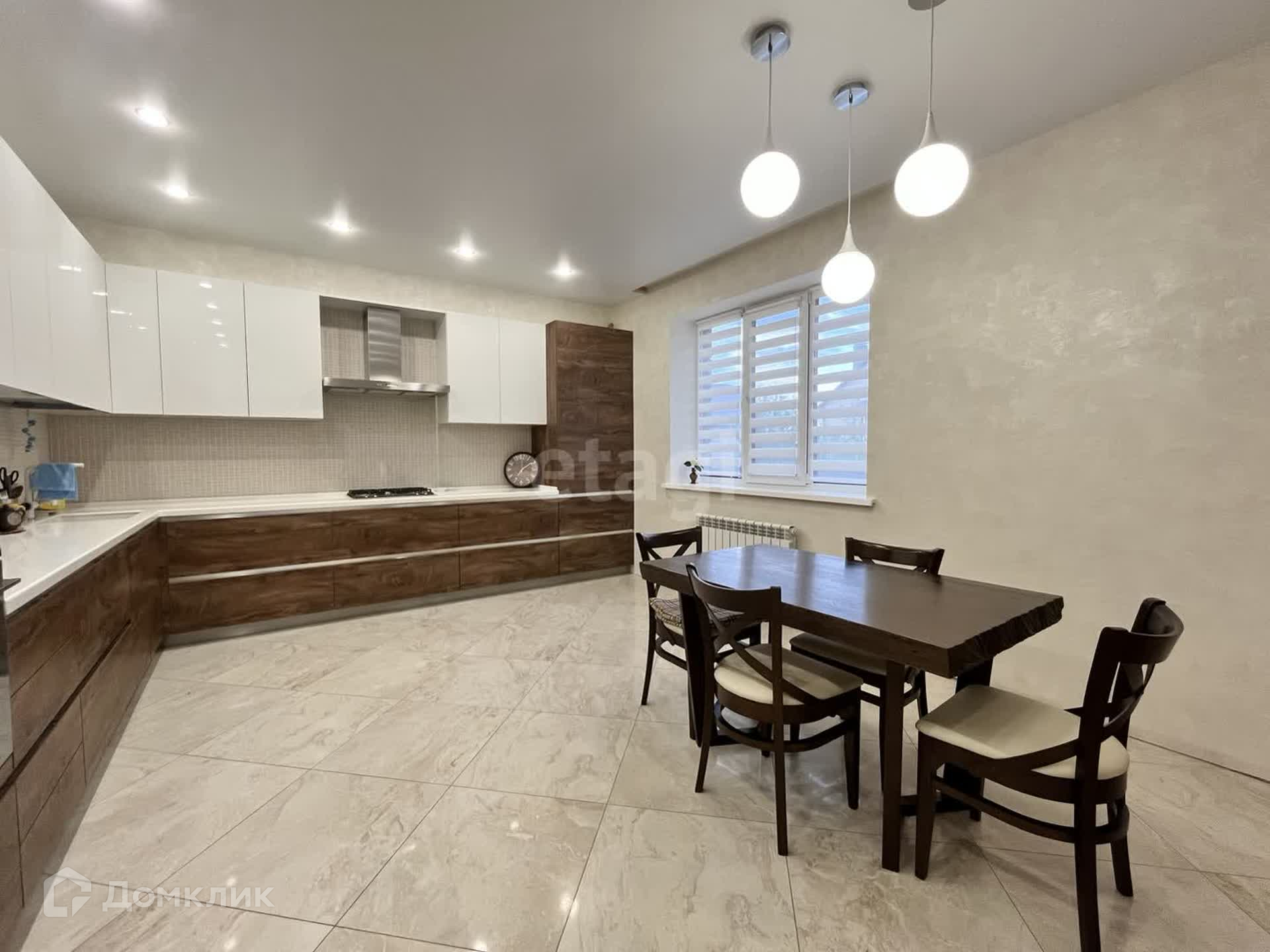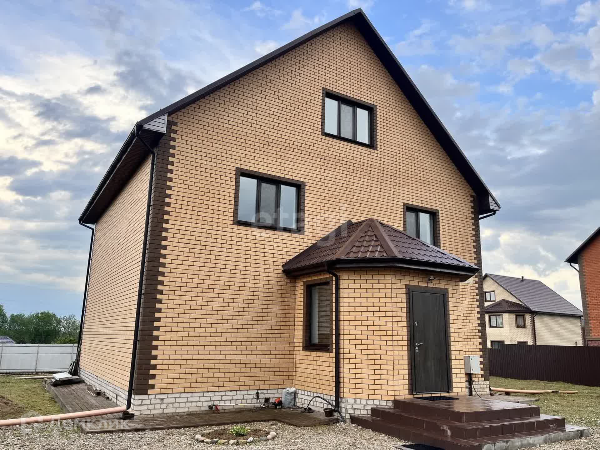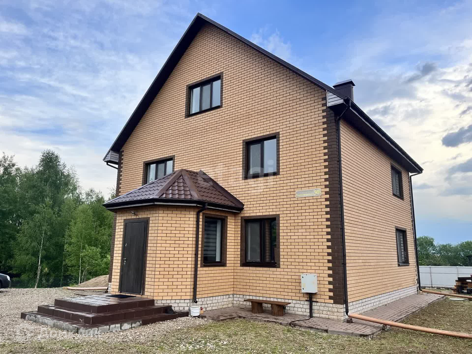 Дом построен из пеноблока, облицовка кирпич. Три жилых этажа. Пять комнат, два санузла, просторная кухня-гостиная