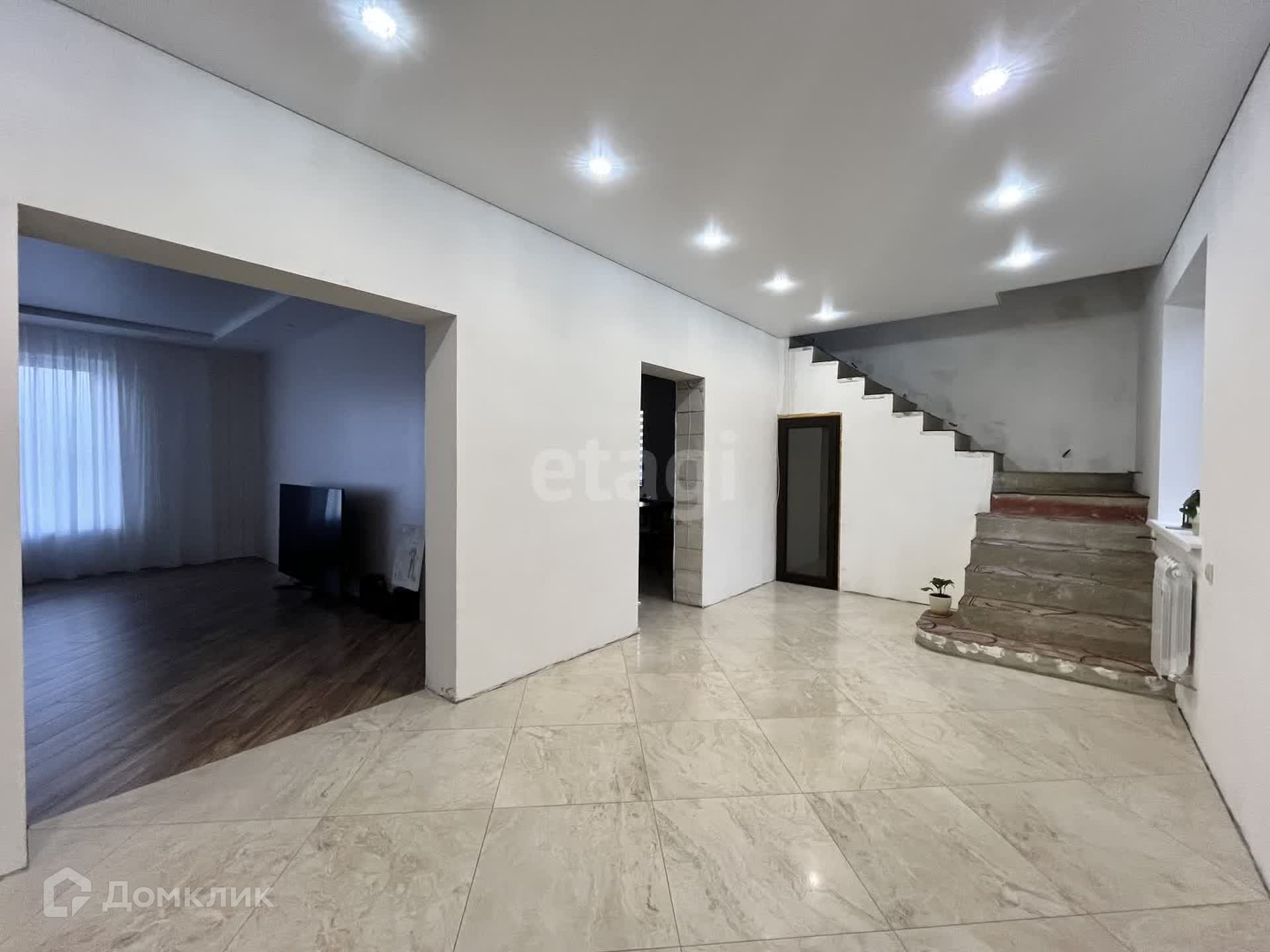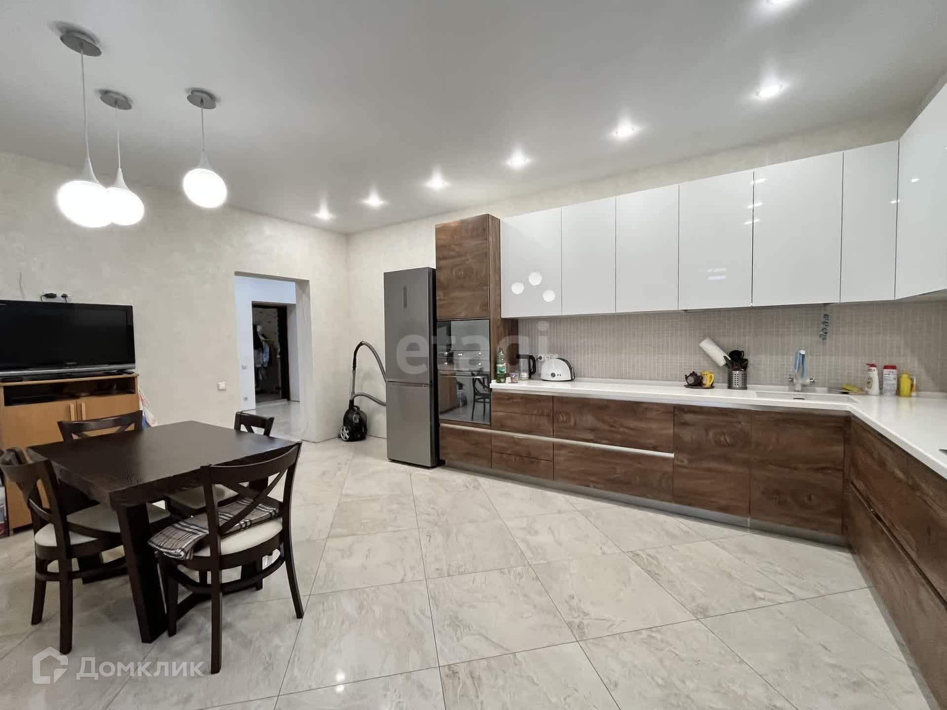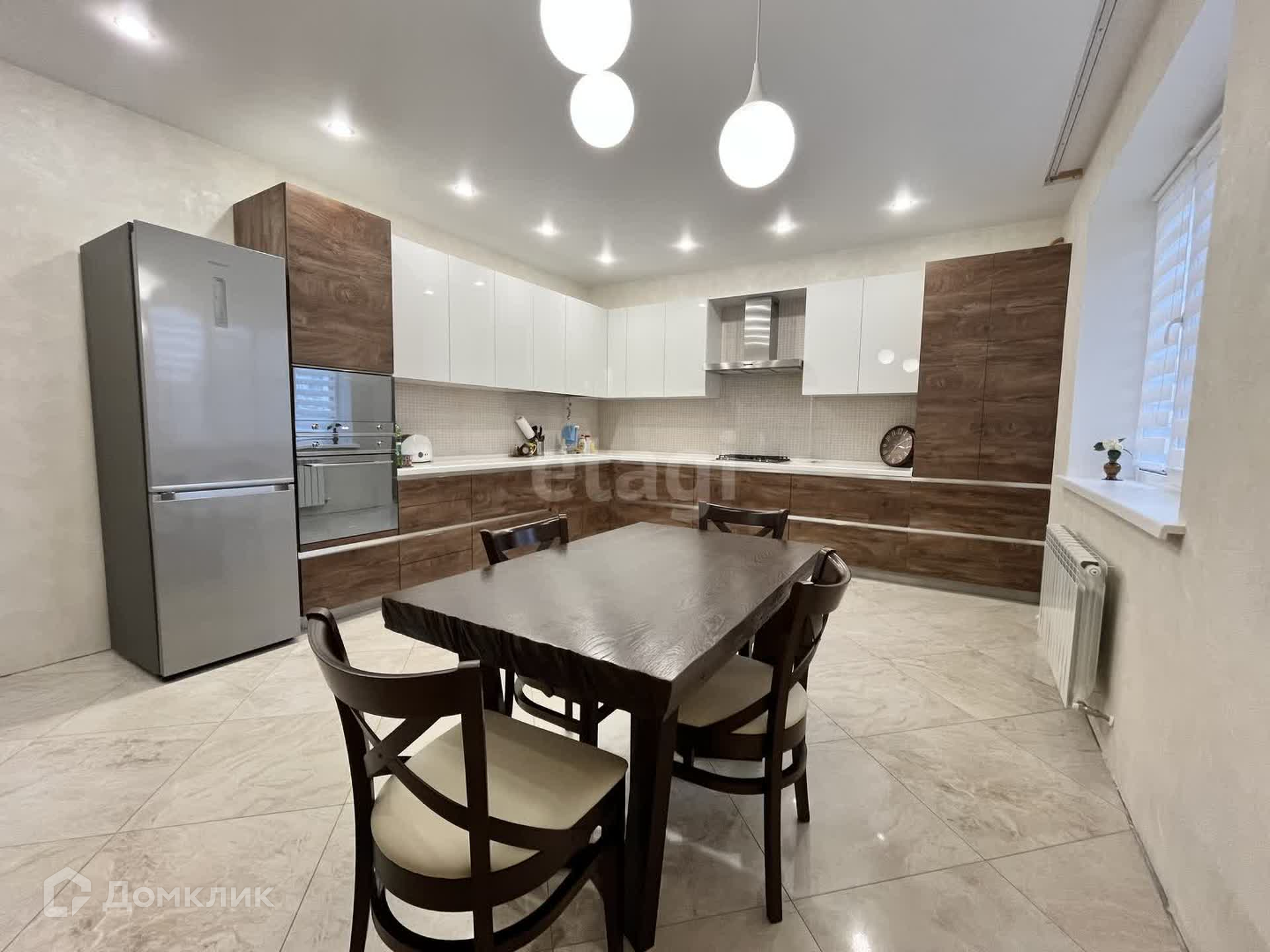 Дом построен из пеноблока, облицовка кирпич. Три жилых этажа. Пять комнат, два санузла, просторная кухня-гостиная