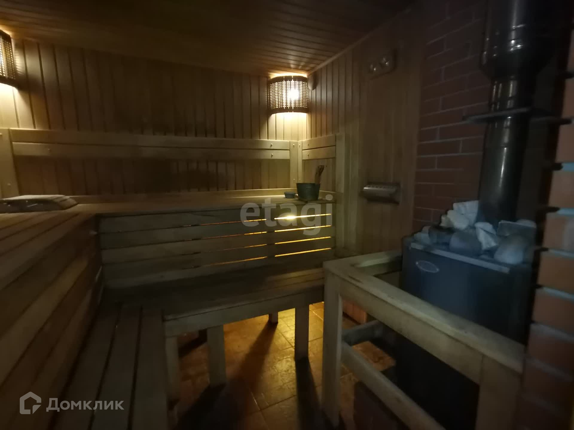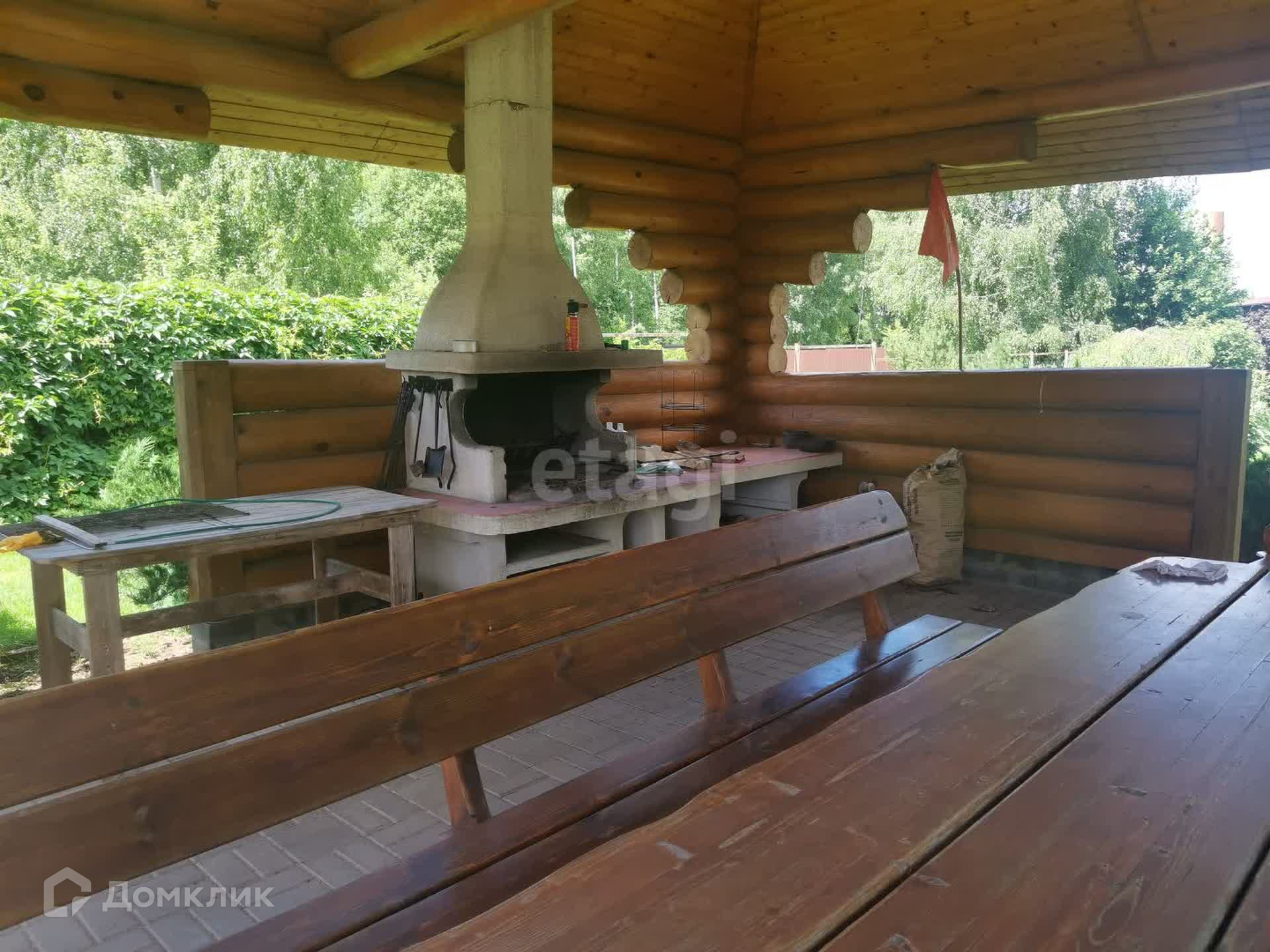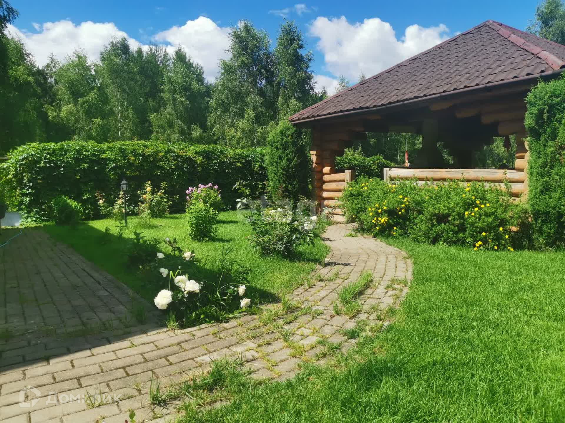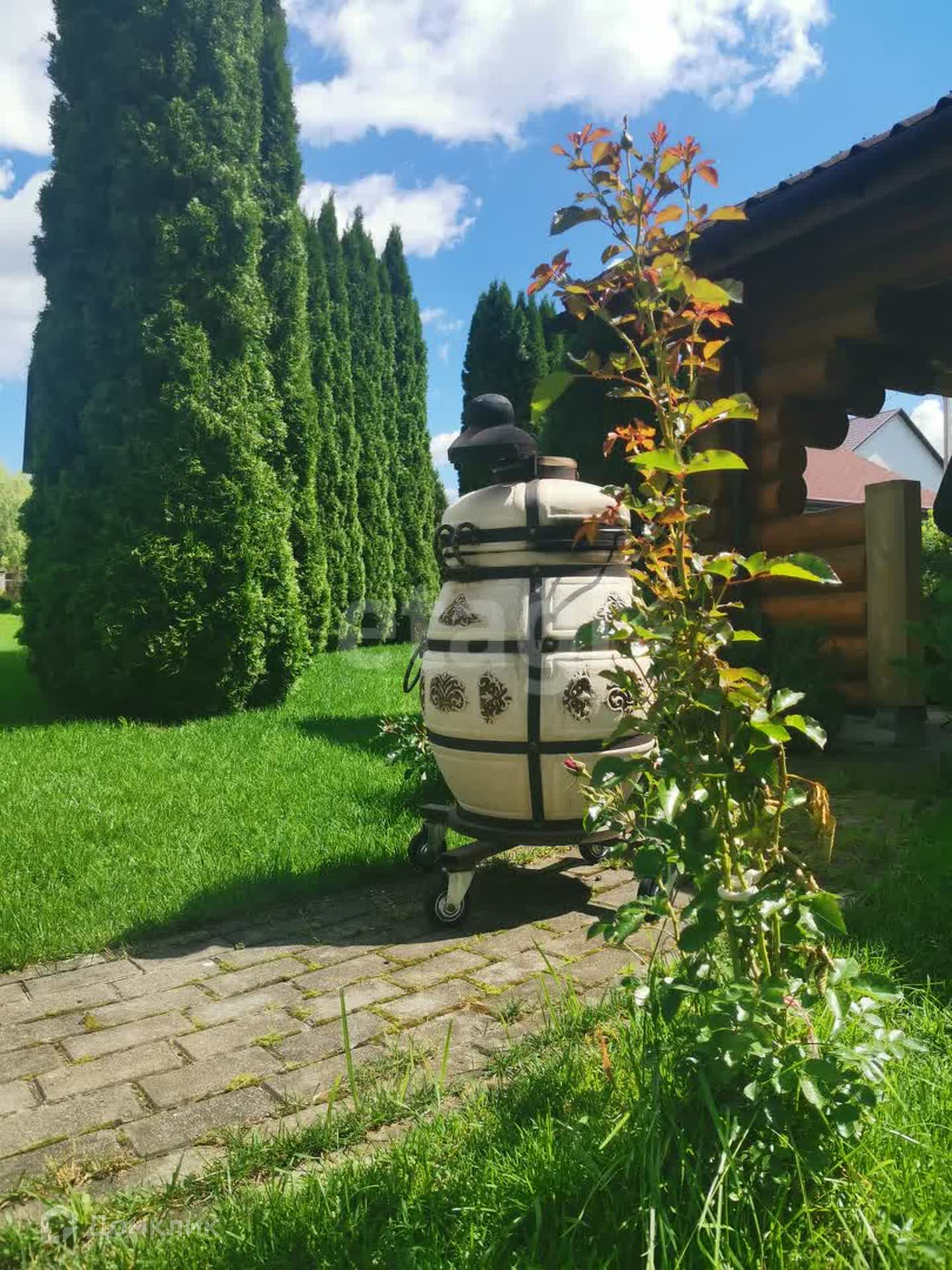 Из кухни выход на террасу, откуда открывается вид на участок с великолепным ландшафтным дизайном и различными насаждениями. При планировке сада создана отдельная обособленная зона отдыха с баней, беседкой и бассейном. Вместе с тем, внимательно продуманное инженерное оснащение позволяет ухаживать за