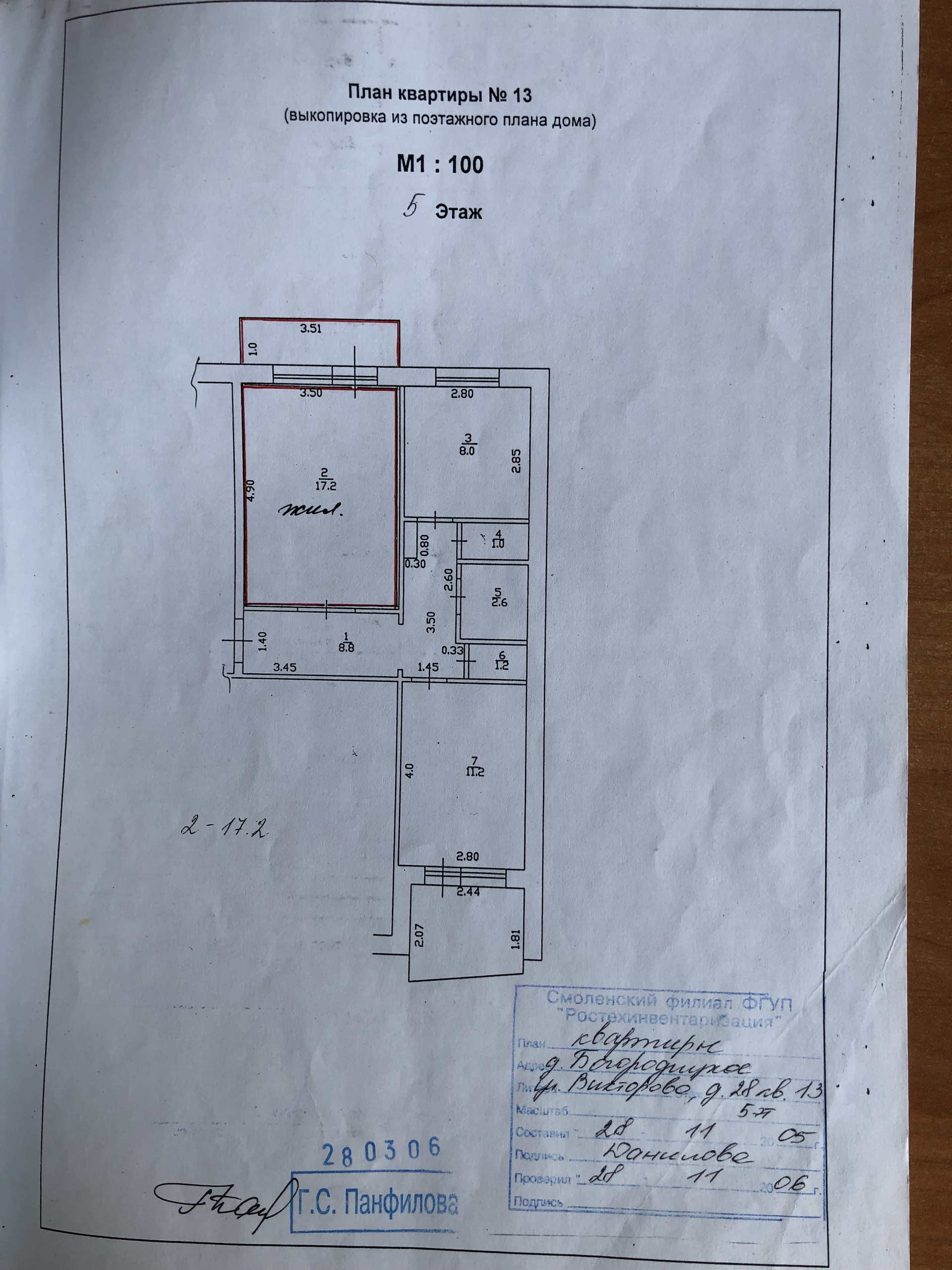 Жилая площадь 28.4 м2