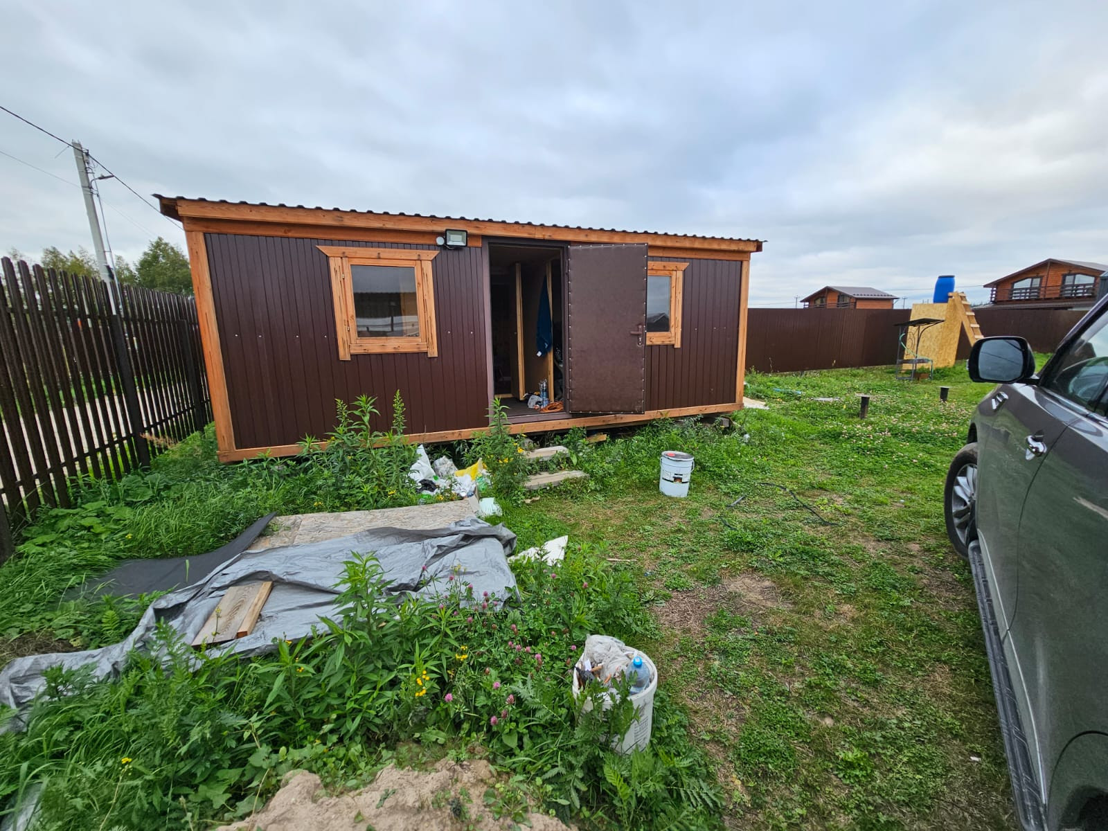 Баня площадью 30 кв.м, новая кухня, отопление- теплый контур. На участке сваи под дом 12,5х12,5. Навес 6х4. Бытовка.