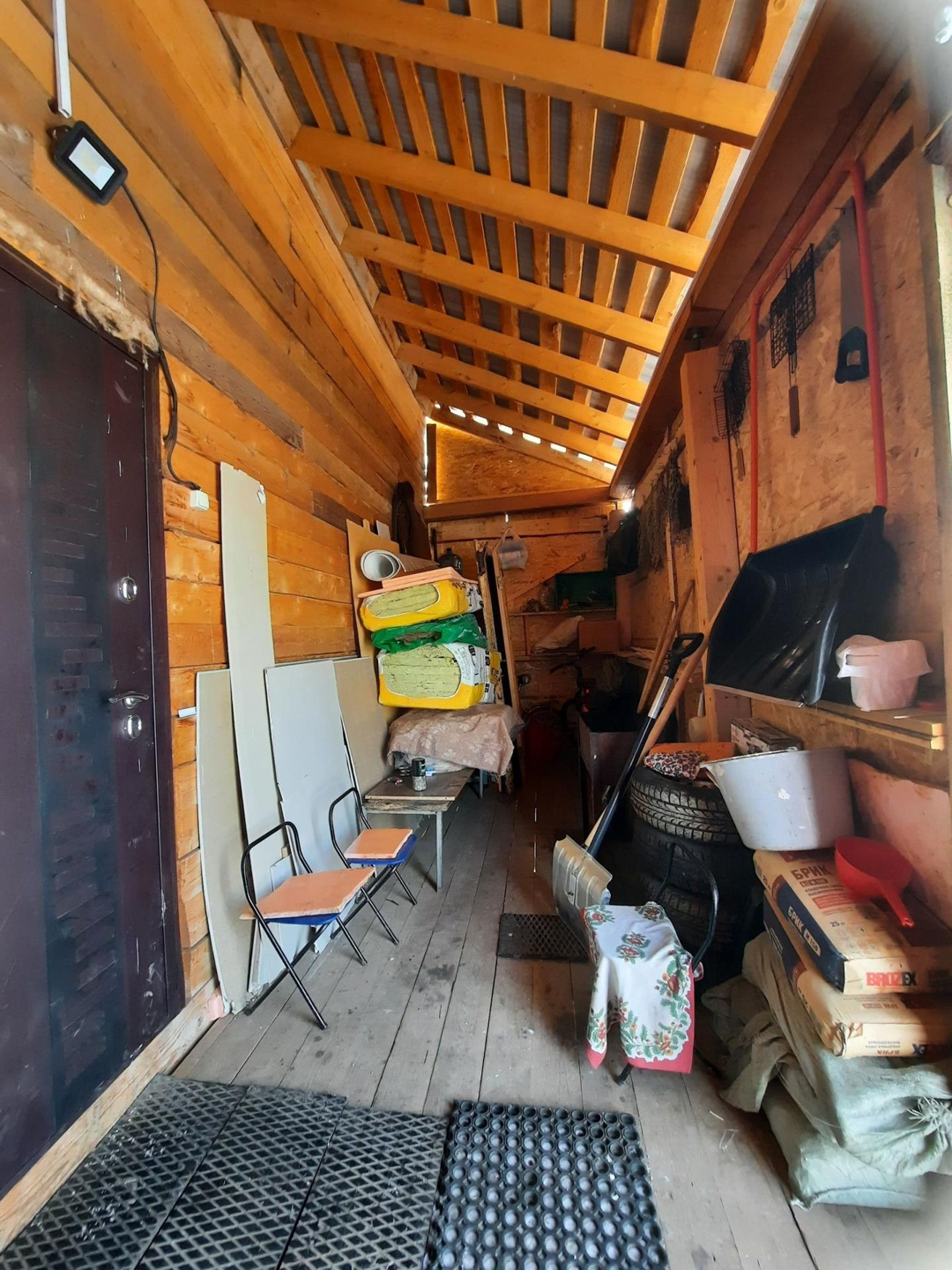 Крытая веранда. Утепленная бойлерная, установлены электрический котел отопления и водяной котел для подачи воды из скважины.