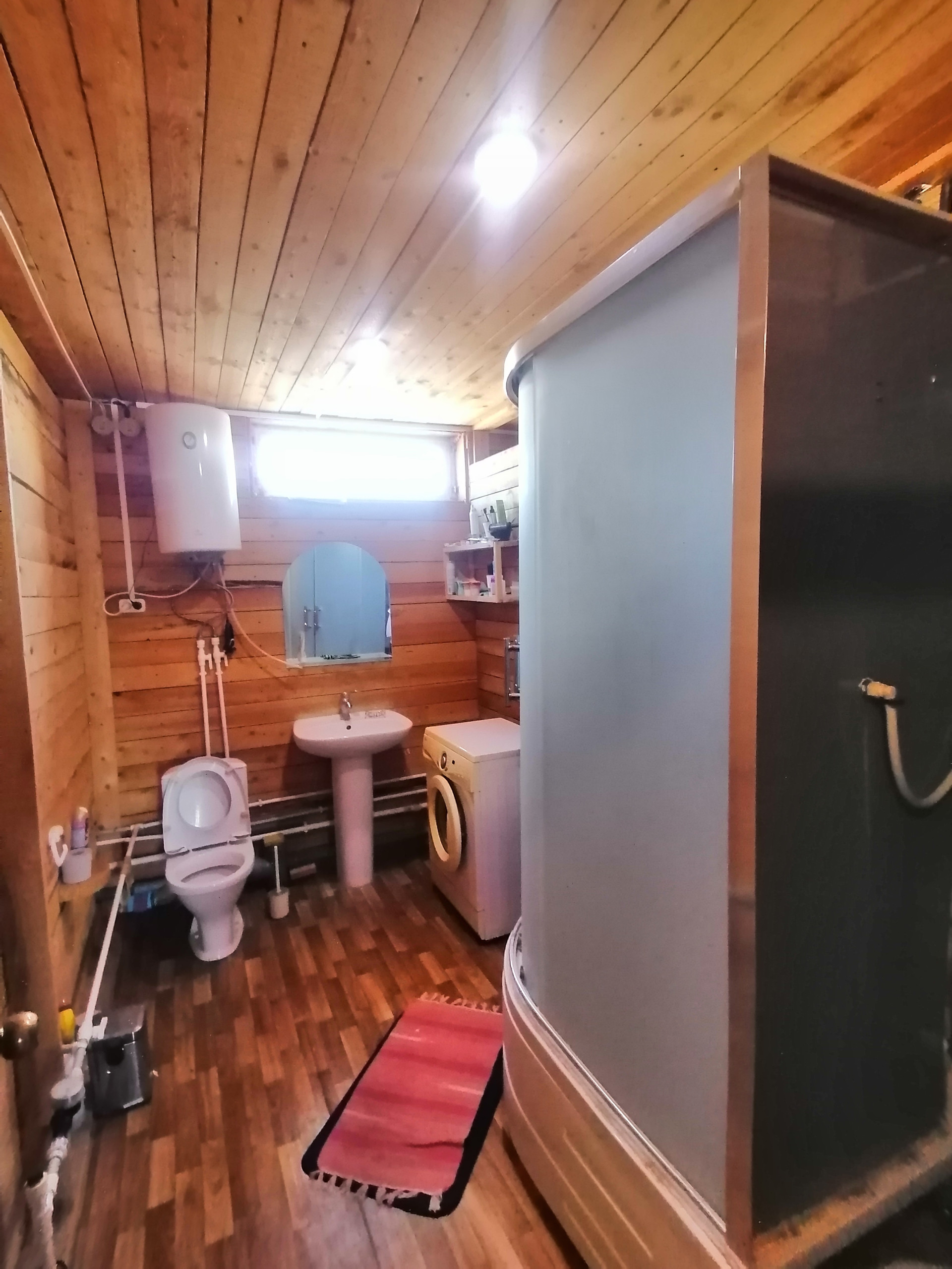 Центральное водоснабжение, твердотопливный котел, конвектора, душевая кабина, качественные стеклопакеты. Веранда площадью 50 кв.м., стены утеплены эковатой 200 мм, пол утеплен эковатой 250 мм, обвязка дома обработана спецсоставом , фундамент из заливных свай.