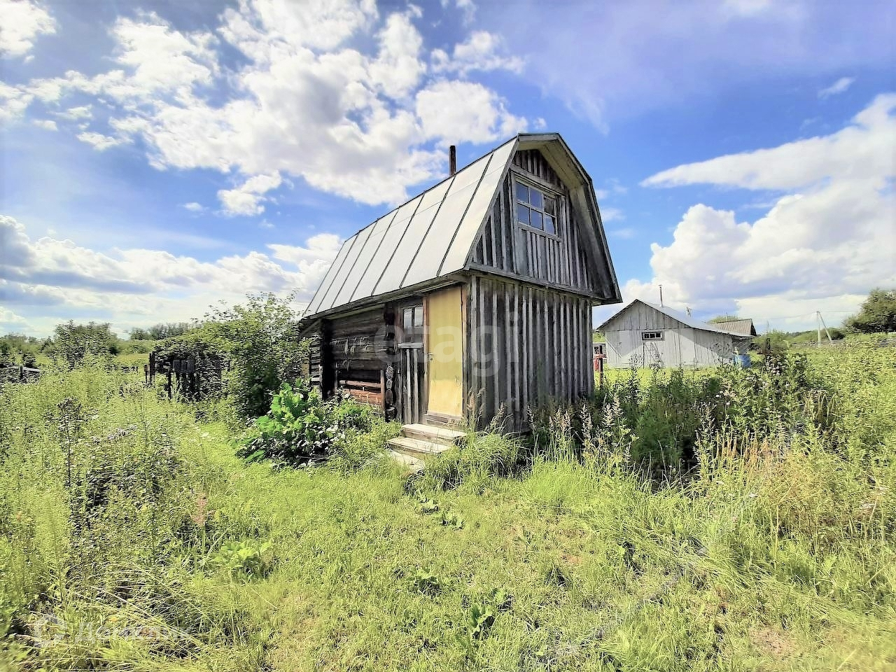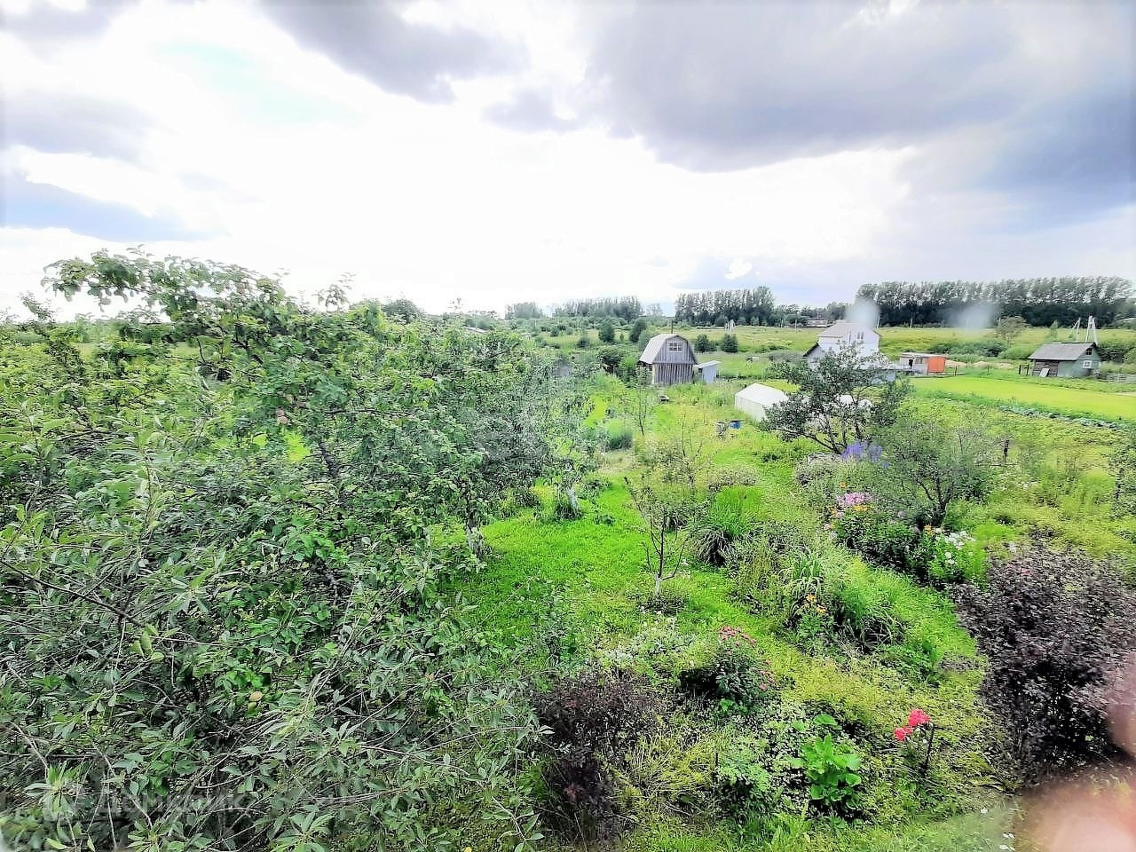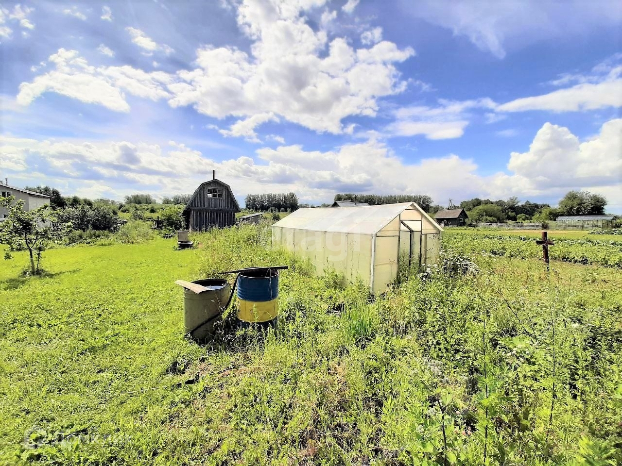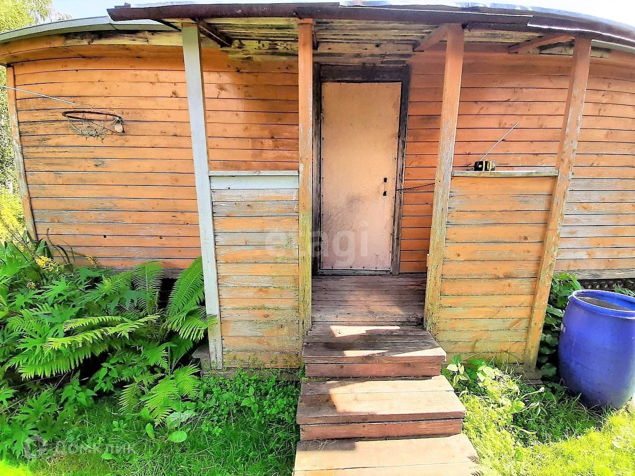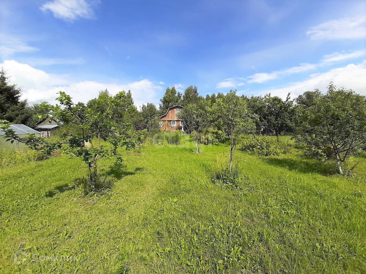 На участке баня, дровница, гараж 6*4 + парковочное место, метал. контейнер, теплица, колодец, туалет, много плодовых деревьев и кустов: яблони, груша, слива, малина, крыжовник, смородина, черноплодка, черёмуха, клубника и очень много цветов!