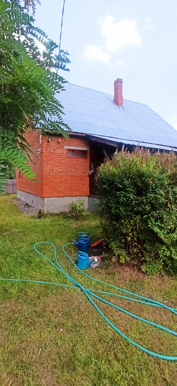 В доме есть свет, вода(скважина 18 метров), печь, централизованный газ в 120 метрах (Программа социальной газификации позволяет подвести газ до границы бесплатно)