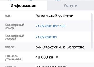 Продаётся участок сельхозназначения для крестьянского (фермерского) назначения КН 71:09:020101:1136 |