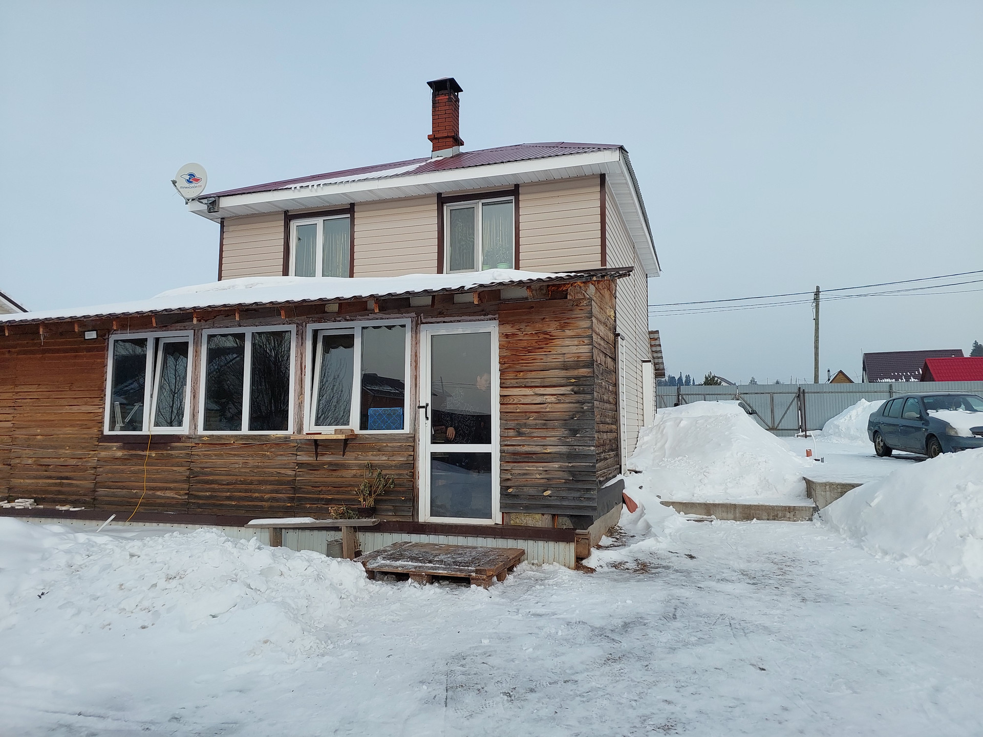 Представляем Вашему вниманию двухэтажный жилой  дом из бревна  с полной отделкой на земельном участке ИЖС в Пермском крае, Заболотское с/п, д. Большакино, 20 минут до города.