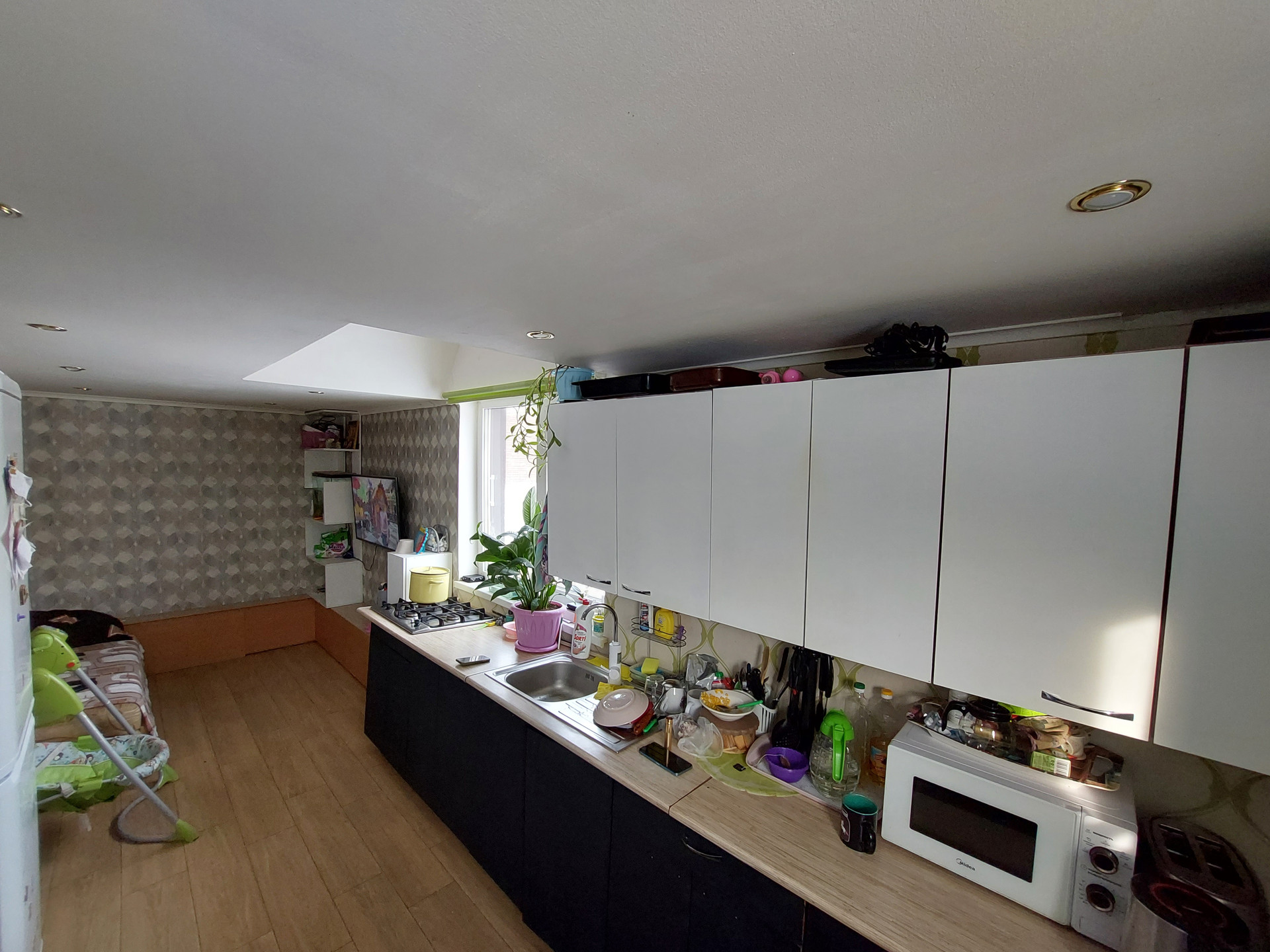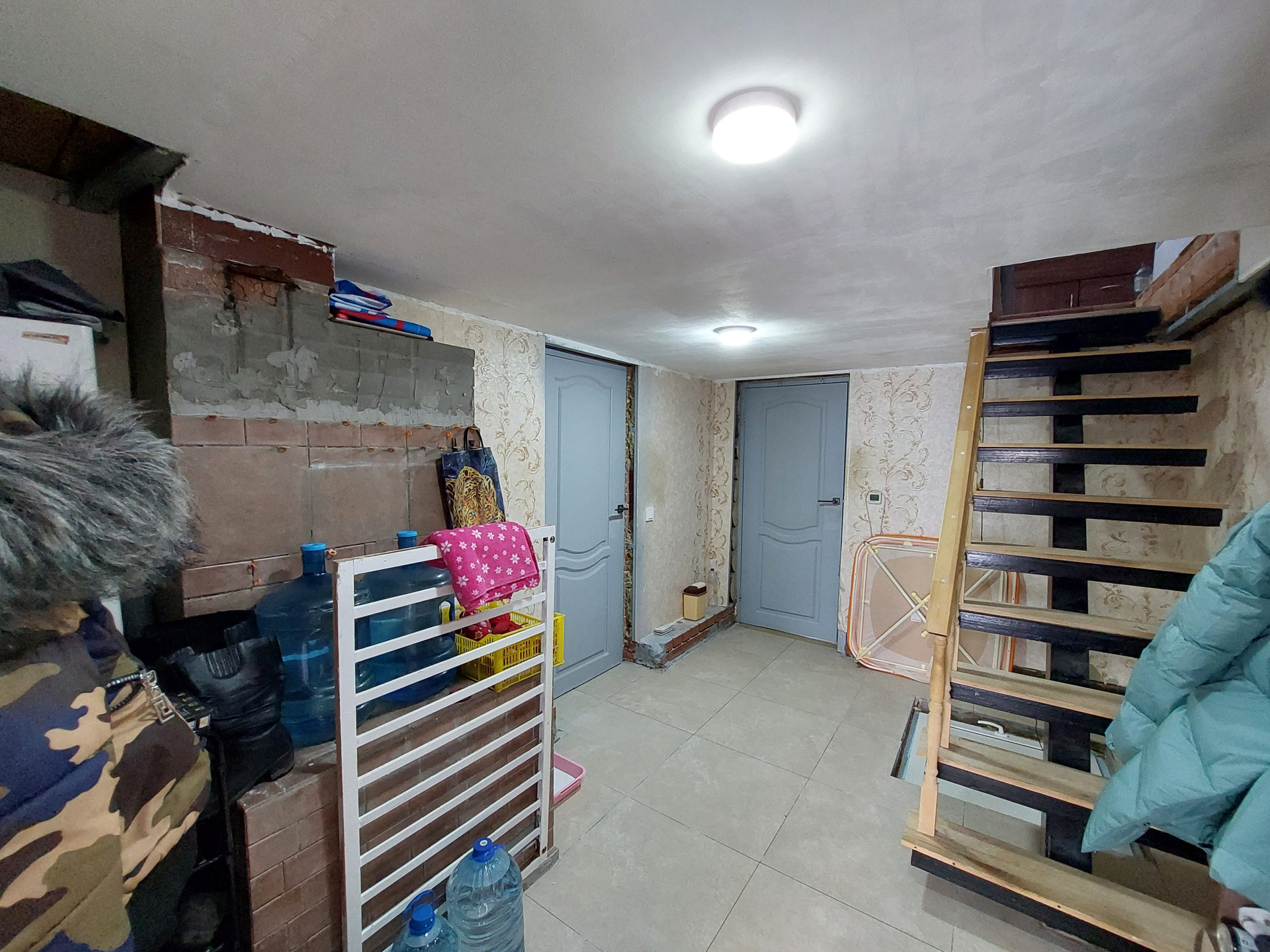 На первом этаже расположена кухня, сан. узел, баня,  большая прихожая (есть погреб).