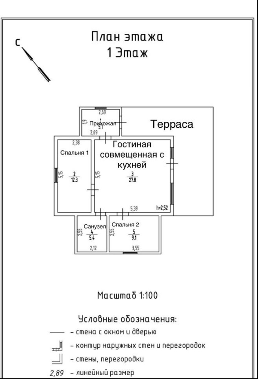 Общая площадь 63.4 м2