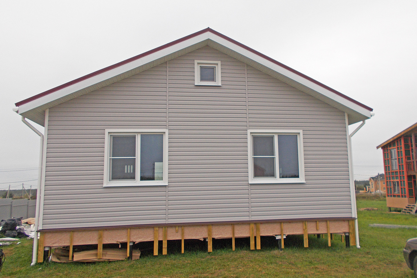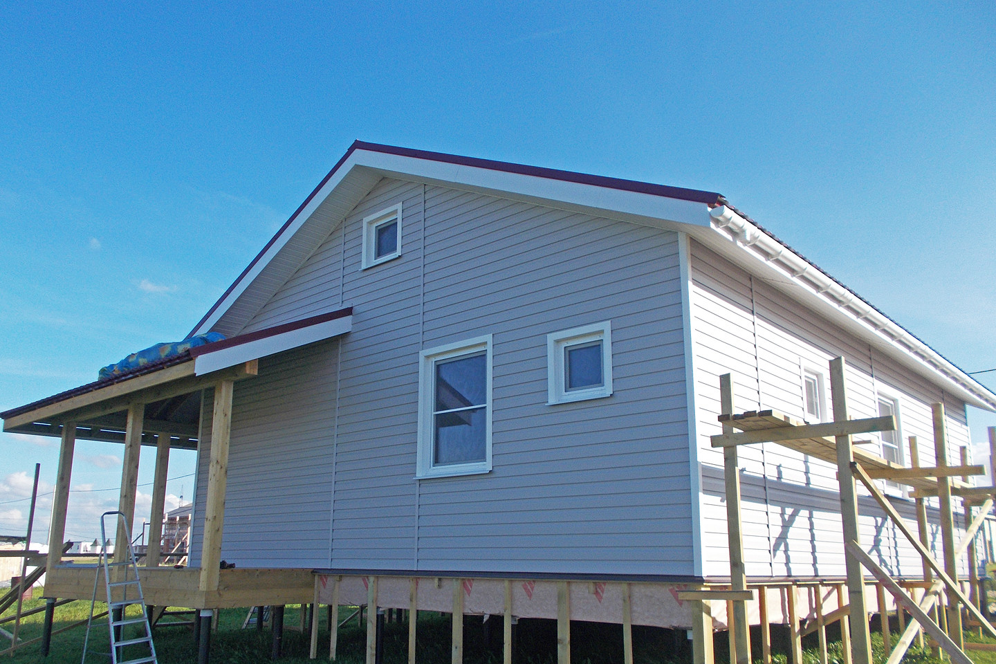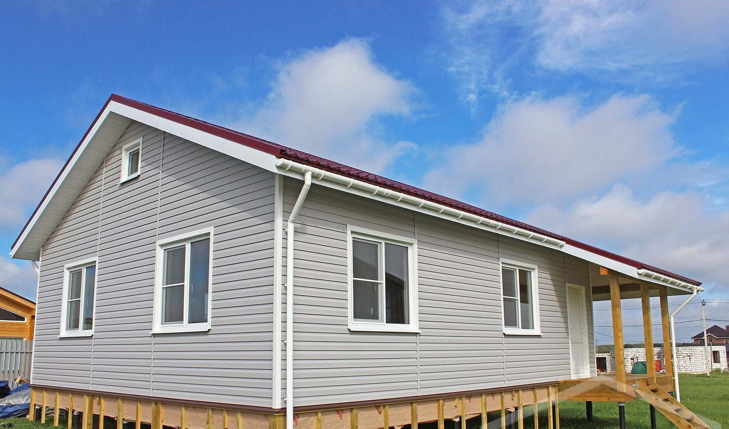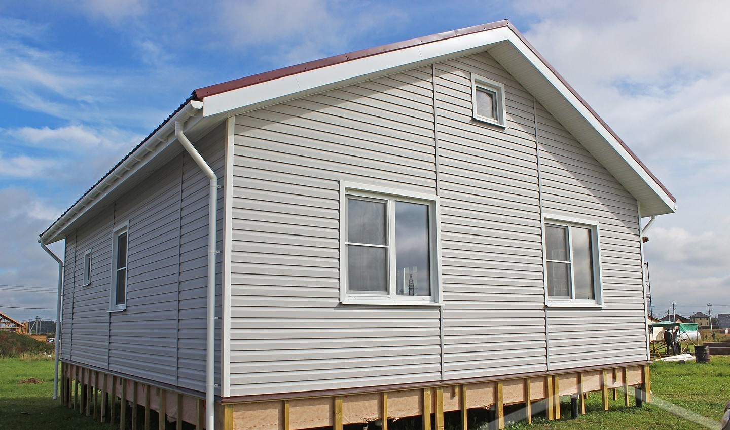 В указанную цену входит полностью готовый внешне дом в оптимальной комплектации - это закрытый теплый контур с фундаментом, фасадом, окнами, вентиляцией, системами снегозадержания и водостока, но без внутренней отделки и инженерных сетей.