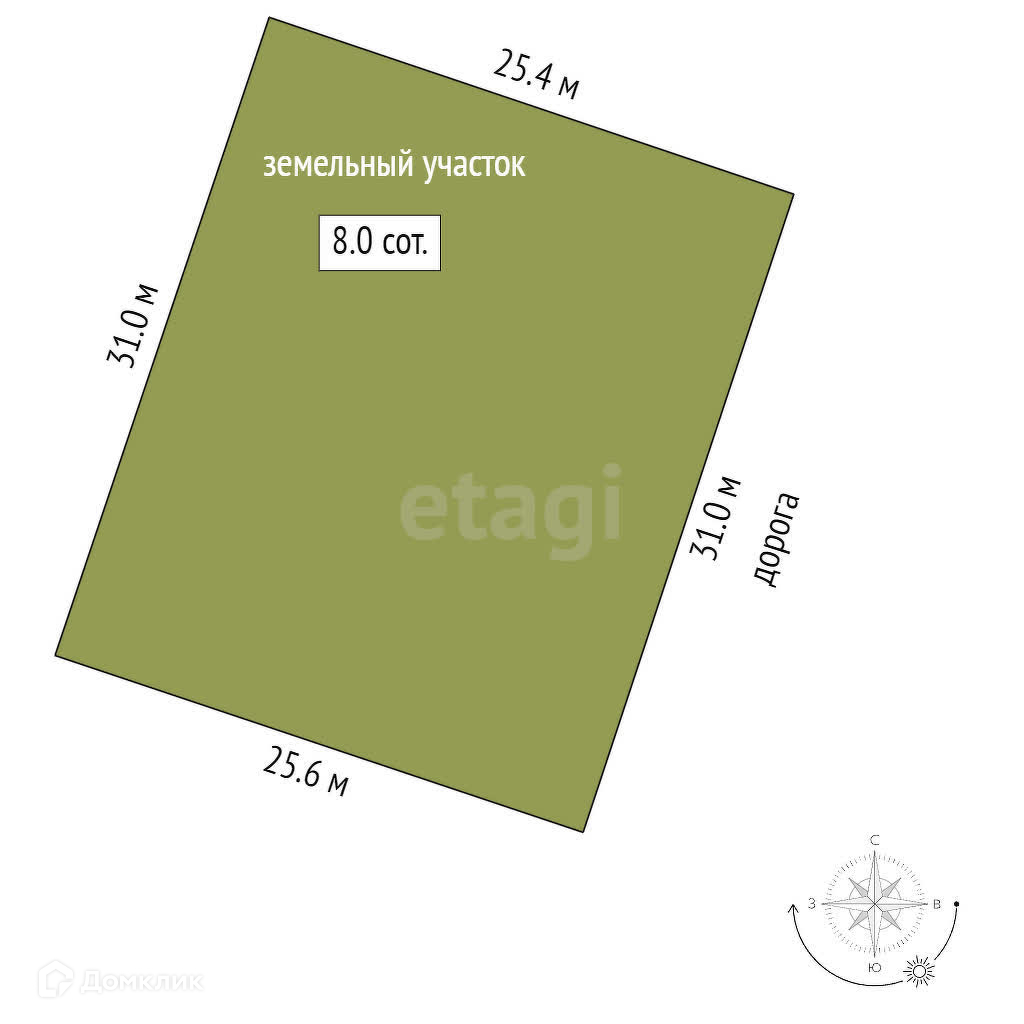 Участок ровный 8 соток, правильной прямоугольной формы. Круглогодичный доступ к земельному участку.