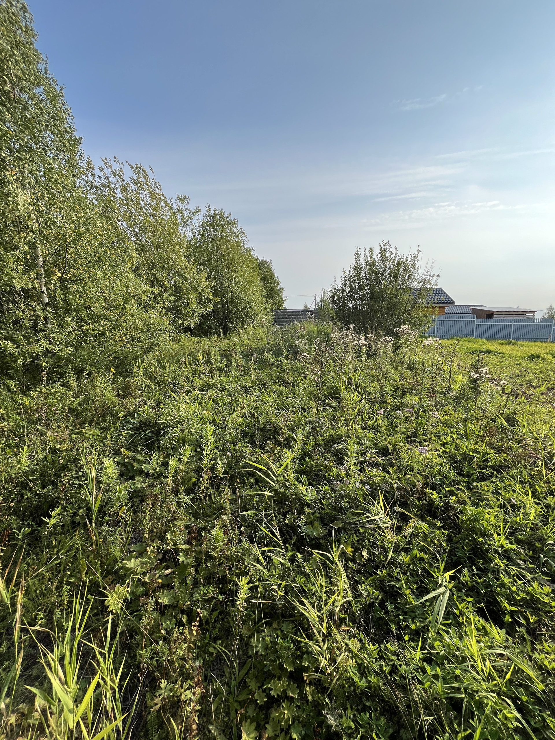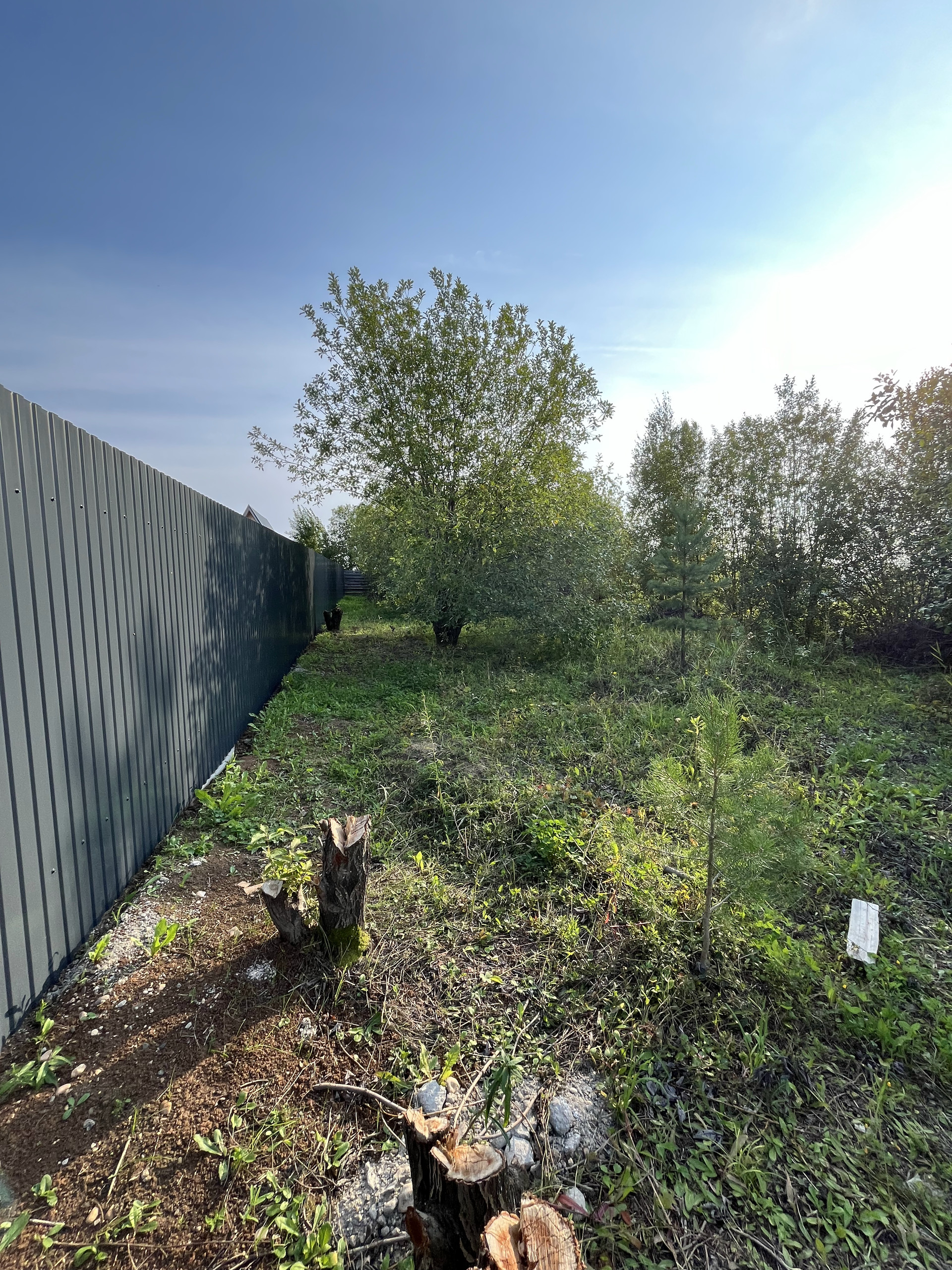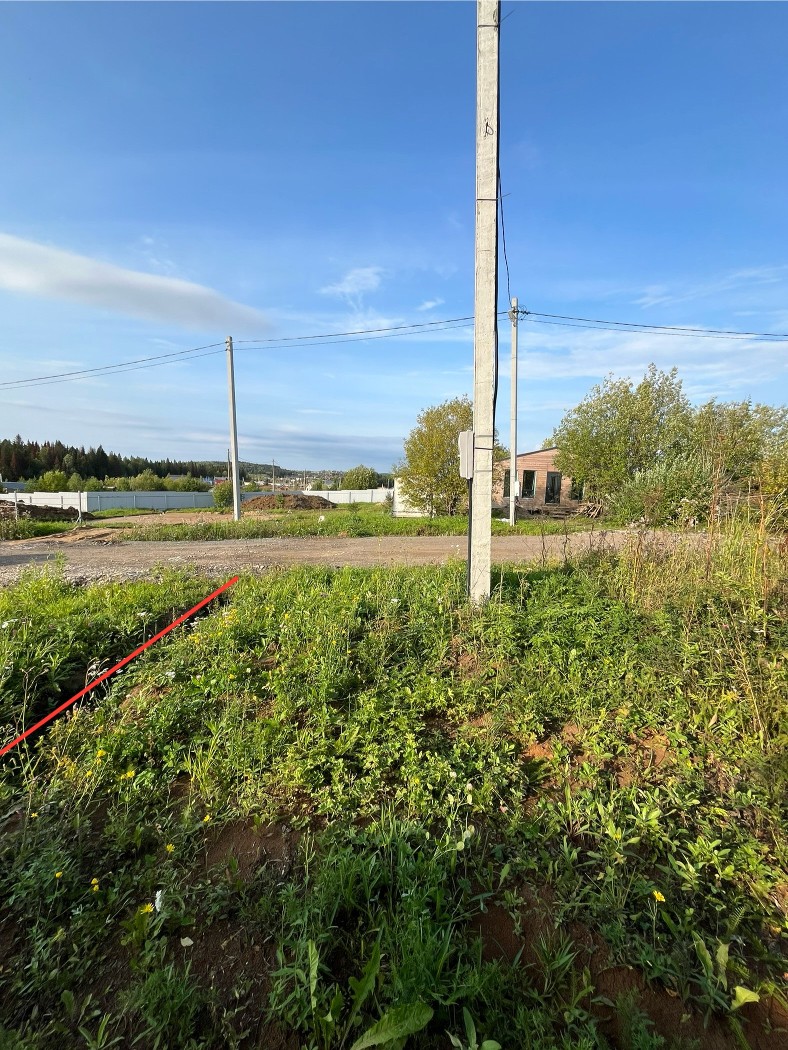Участок правильной прямоугольной формы, с двух сторон огорожен забором. На участок уже выполнен заеду. Есть вода.