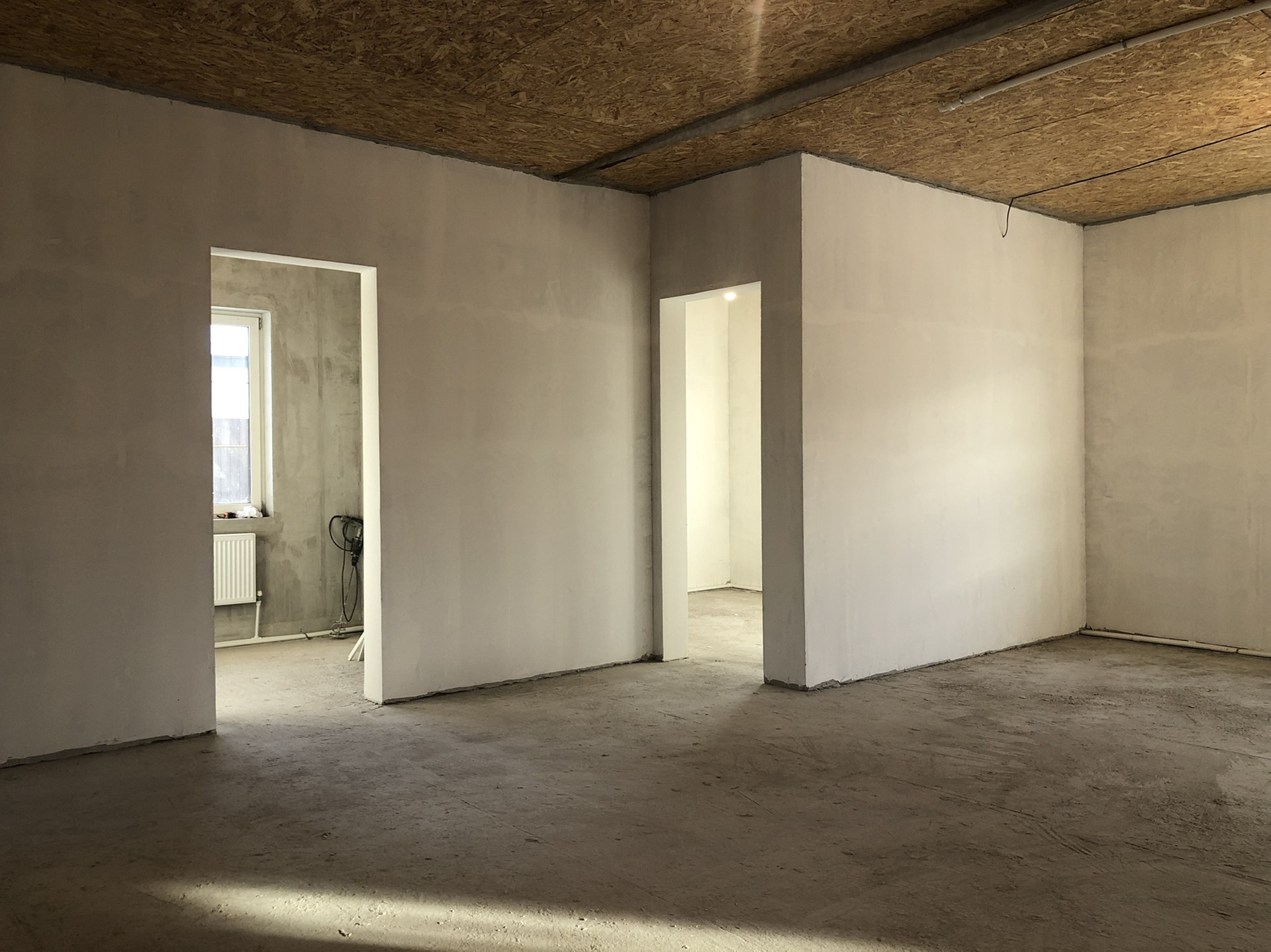 В доме выполнен ремонт под чистовую отделку (заштукатурены стены и откосы , проведено батарейное отопление)
