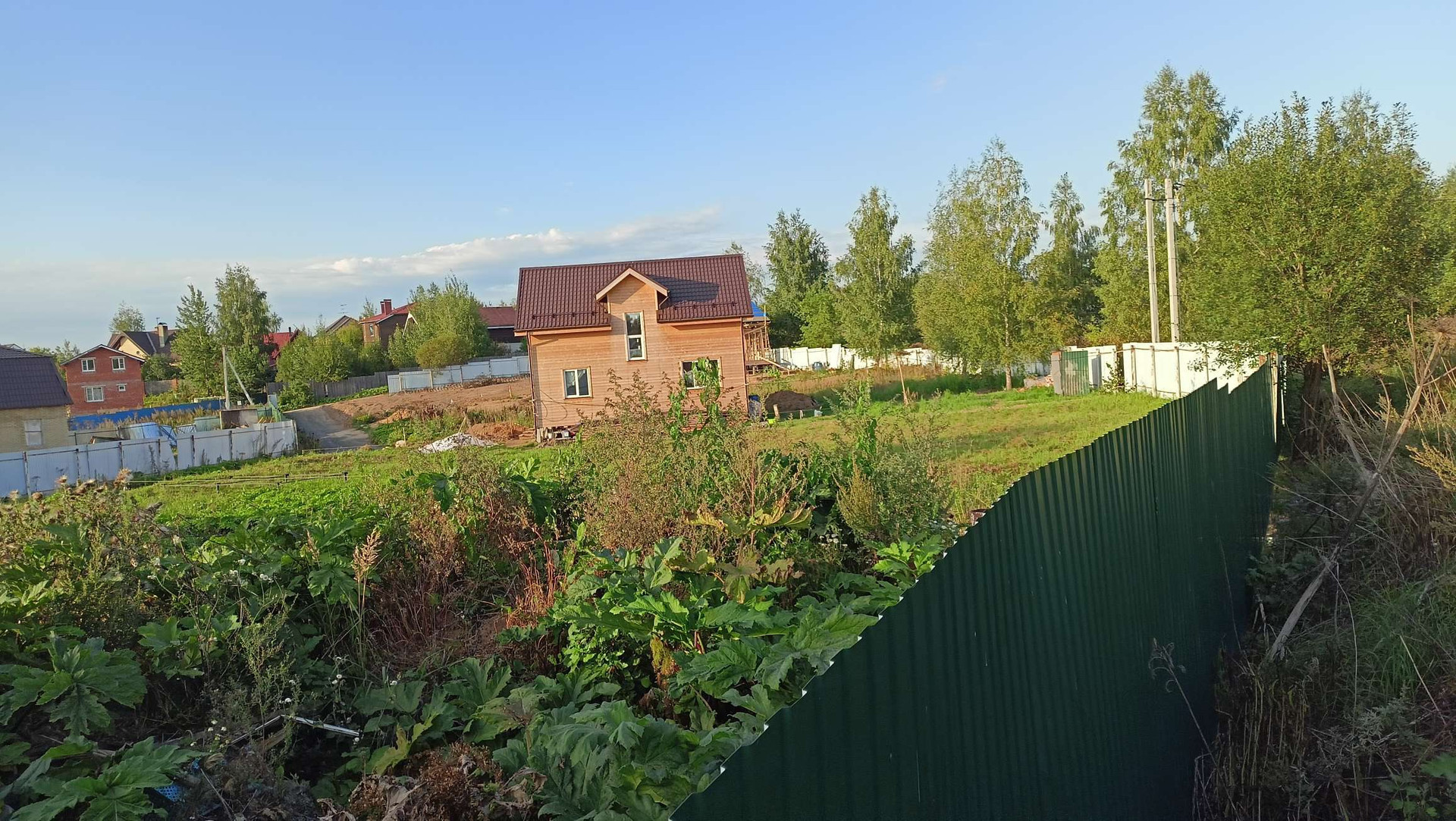 Хороший участок в деревне. Есть обременение на части участка от эл.столбов. Выровнен, почищен. Забор с 3 сторон, отдельных 2 въезда. Возможен торг.