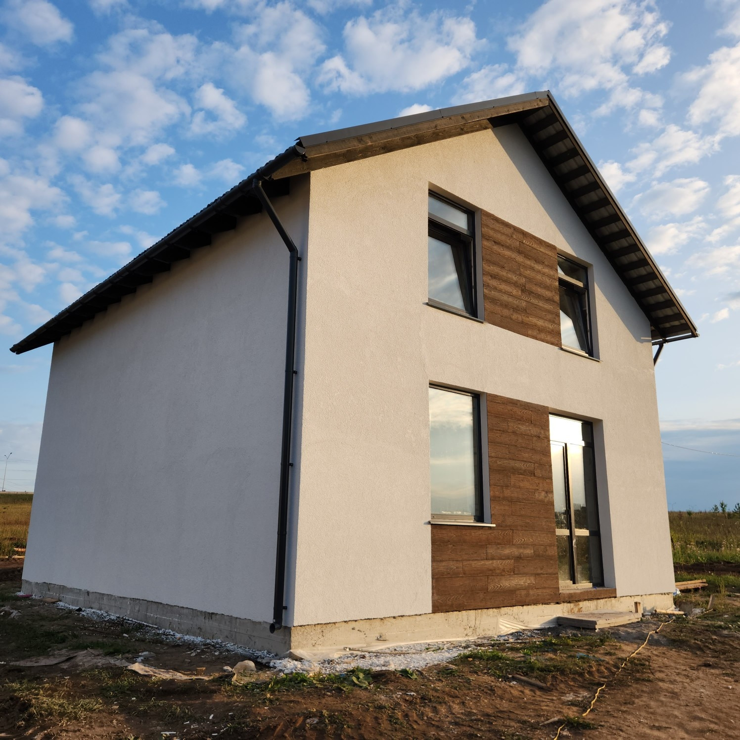 Дом в 5 минутах от города. Участок ровный, асфальтированная дорого до участка . Остановка общественного транспорта в 200 м, магазин в 200 м. Газ по границе участка
