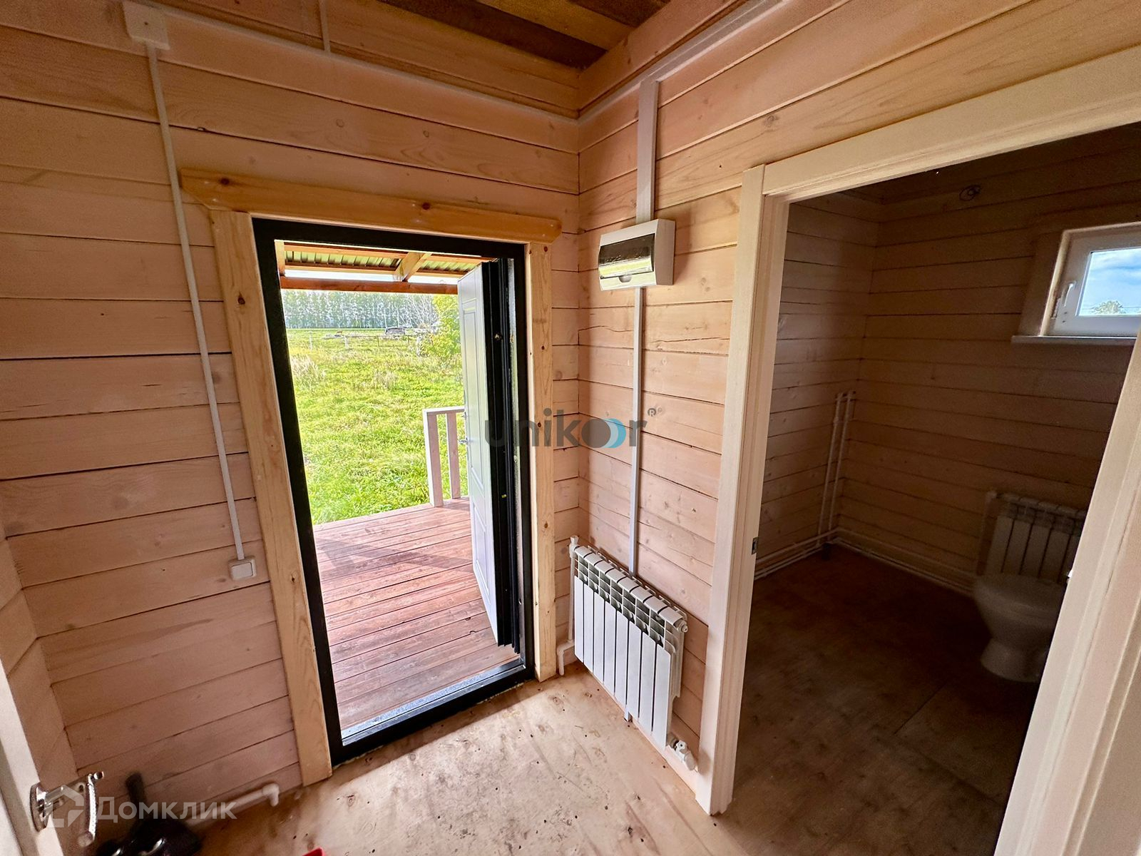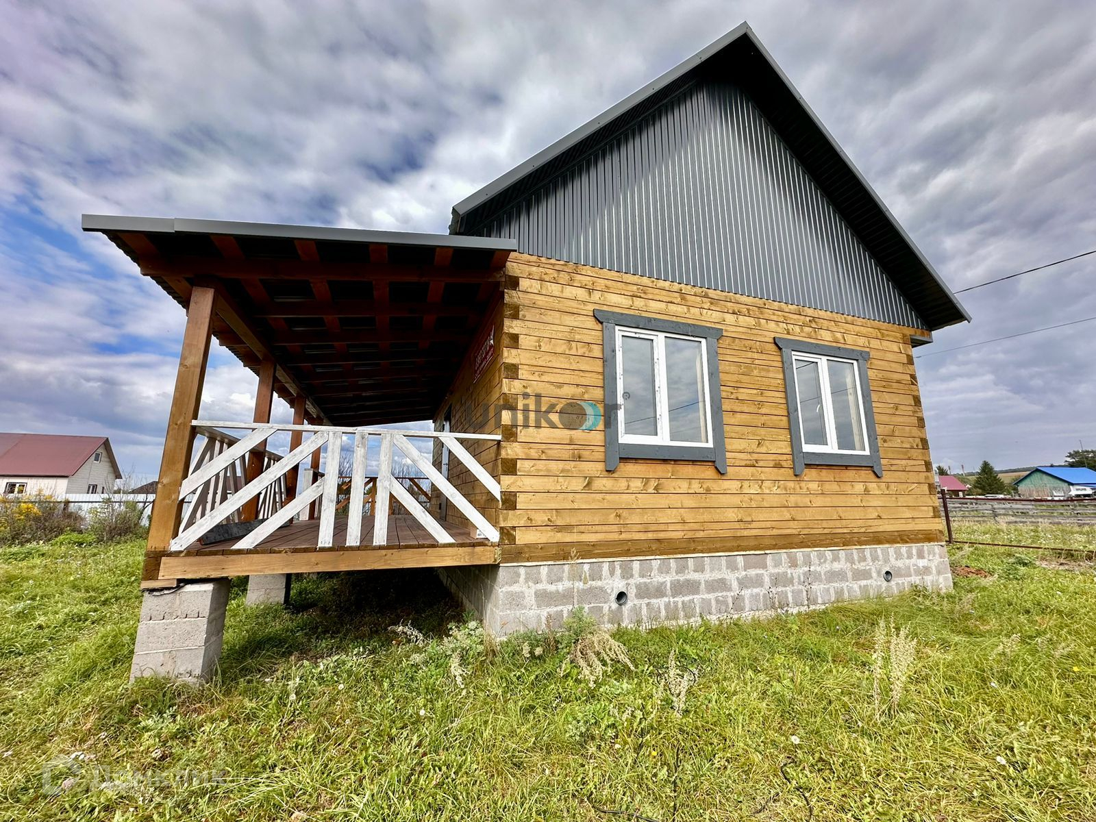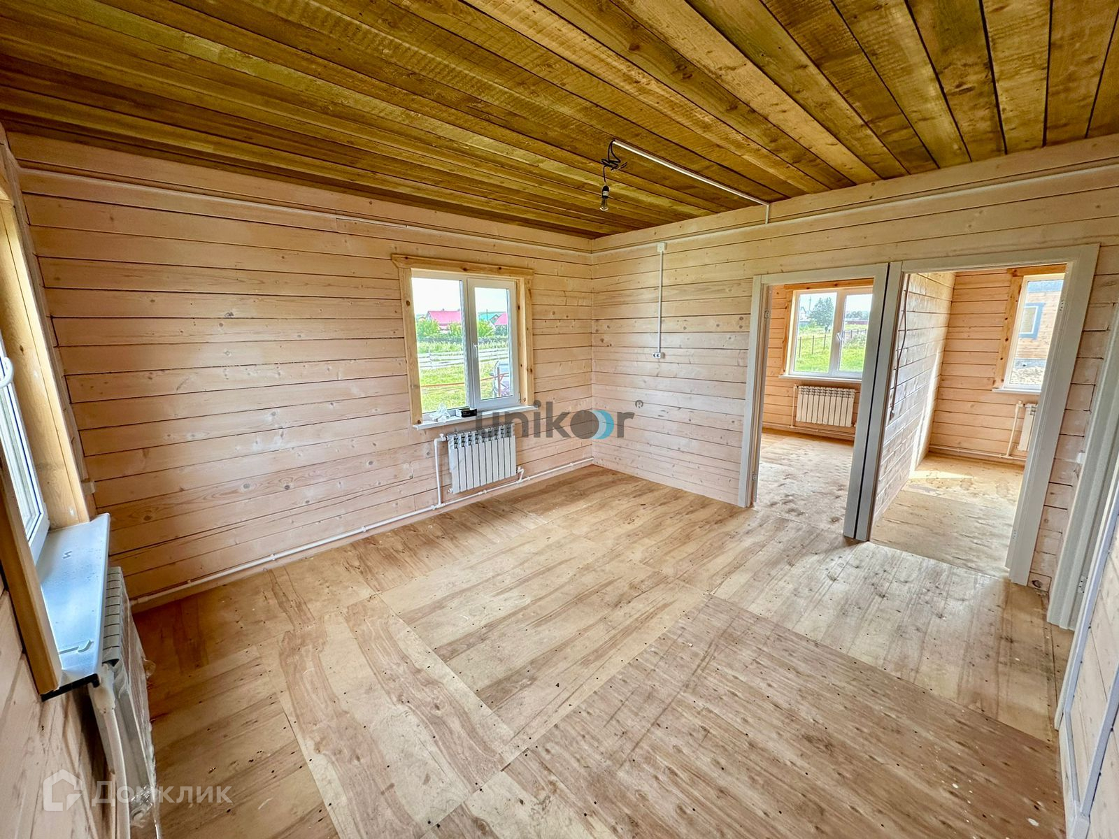 Сделана чистовая отделка- стены строганный брус, обработанный антисептиком, установлены двухкамерные пластиковые окна, двери, металлическая входная дверь, кровля-профнастил.