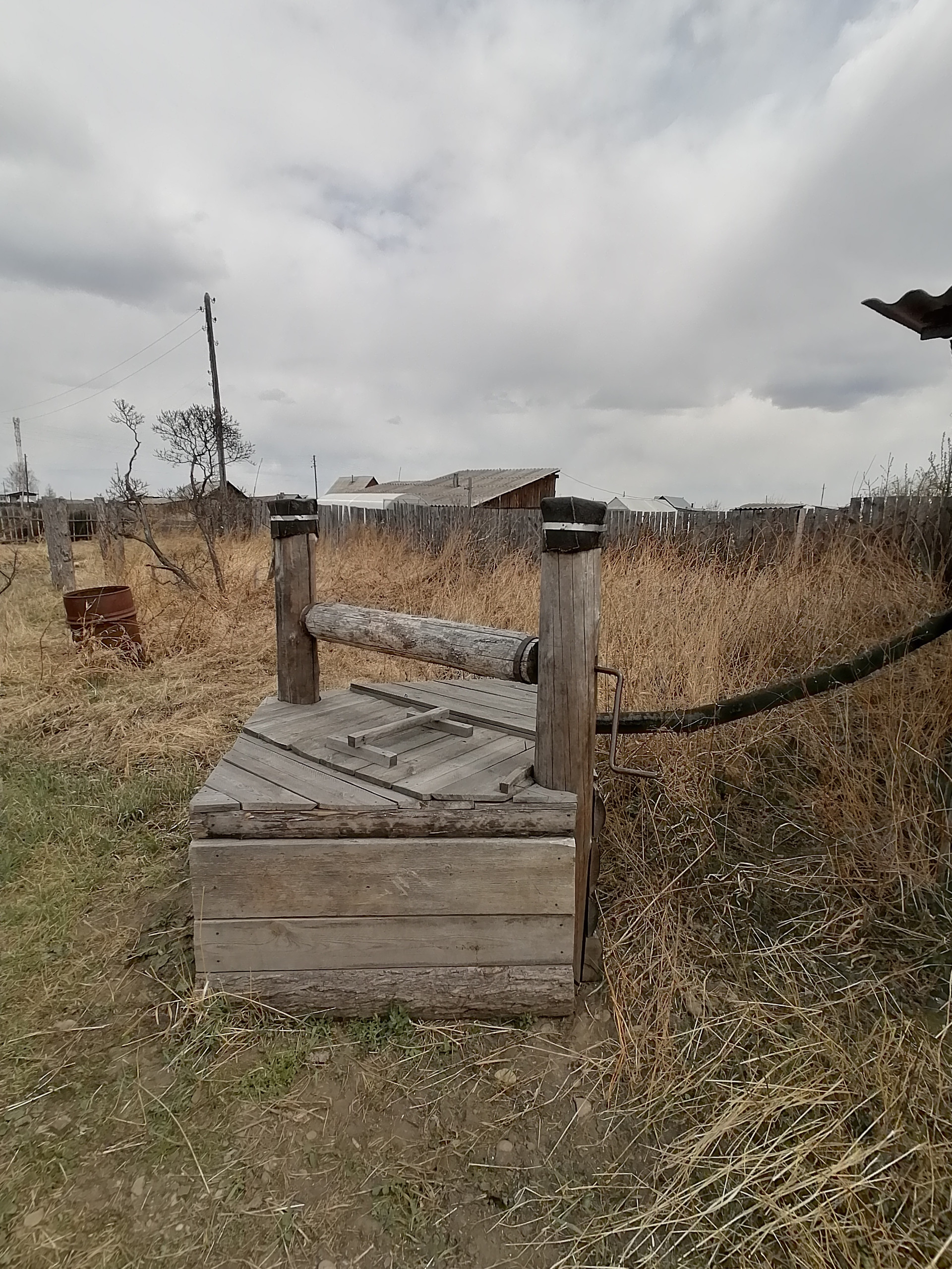 Есть надворные постройки - баня бревно, сарай (построен под гараж), дровяник, небольшой сарай под инструмент. Свой колодец во дворе (вода хорошая, питьевая) сделана подача воды в дом.Участок ровный, из посадок малина, облепиха.