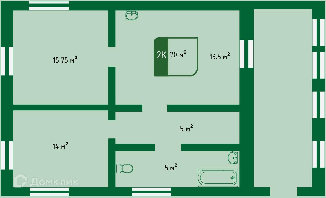 Общая площадь 70 м2