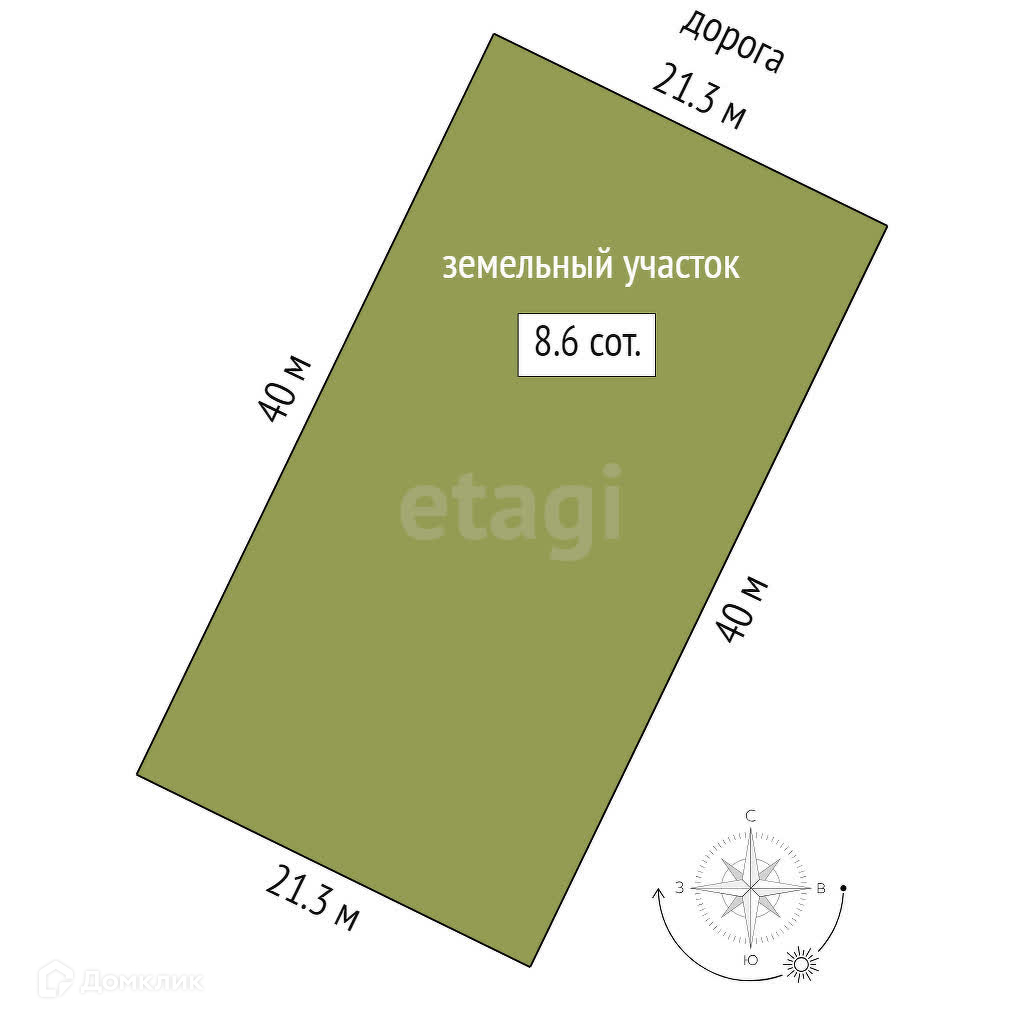 Площадь участка 8.6 сот.