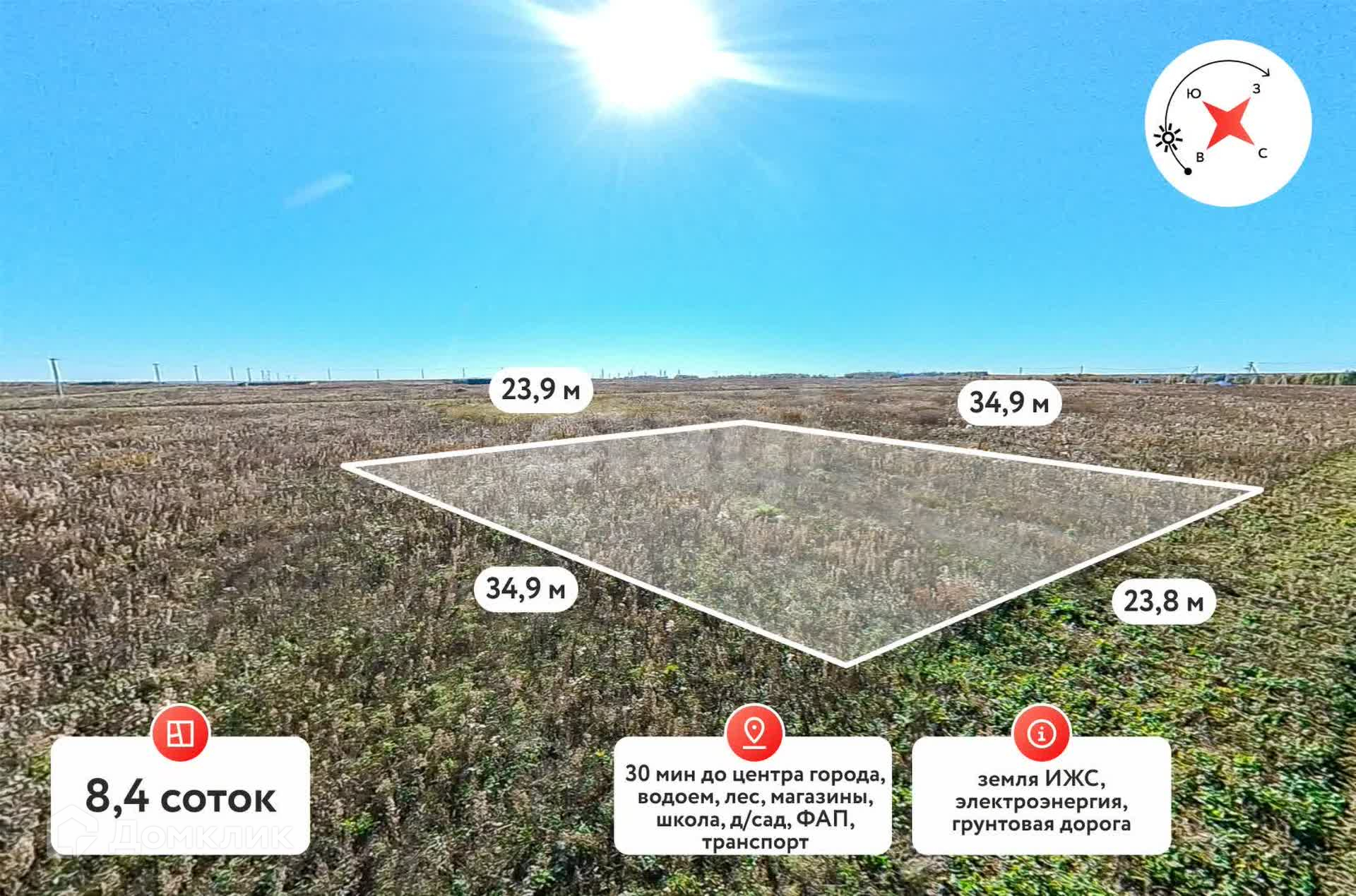 Участок правильной формы , уже установлен столб для электричества.