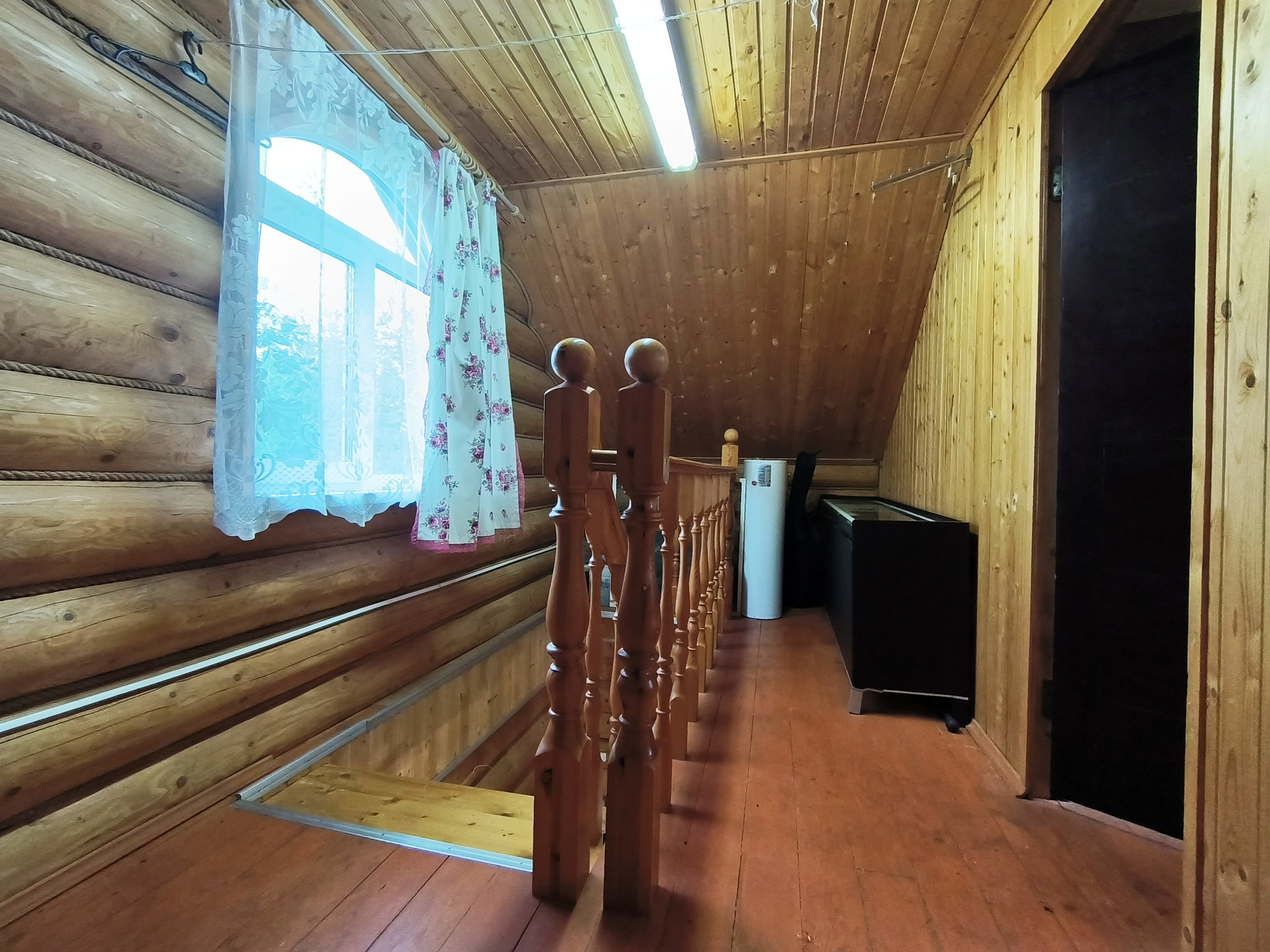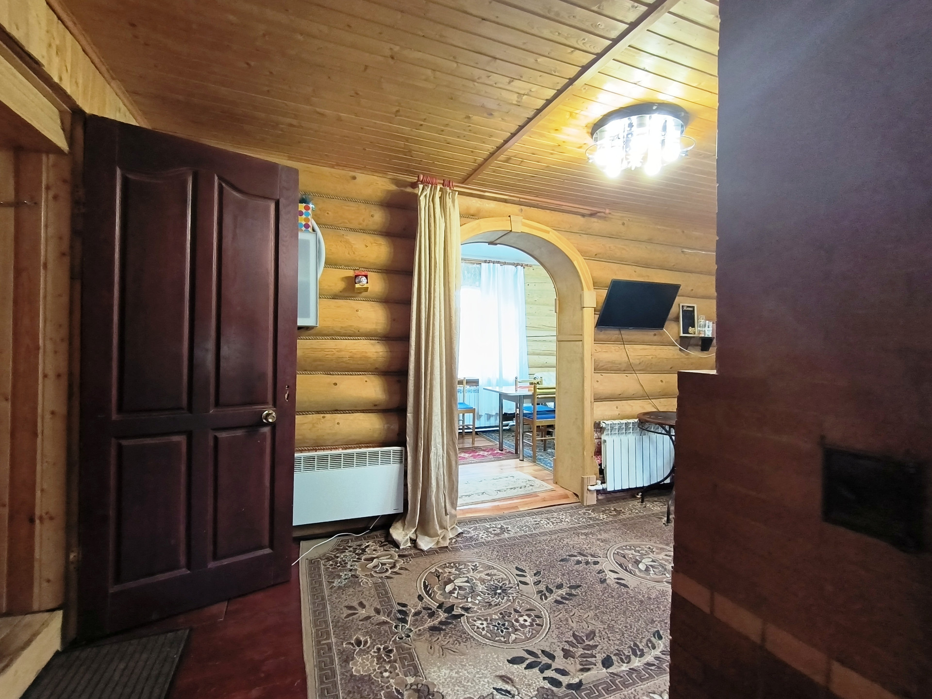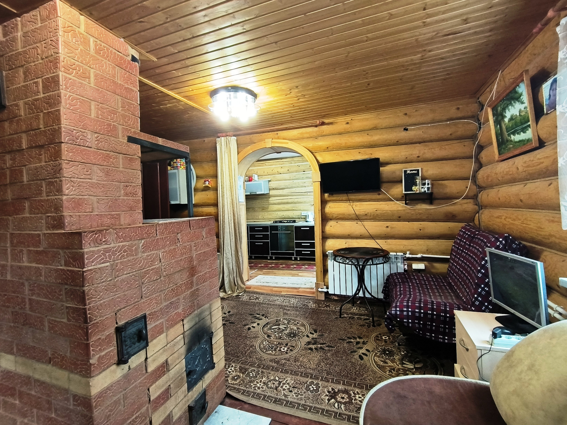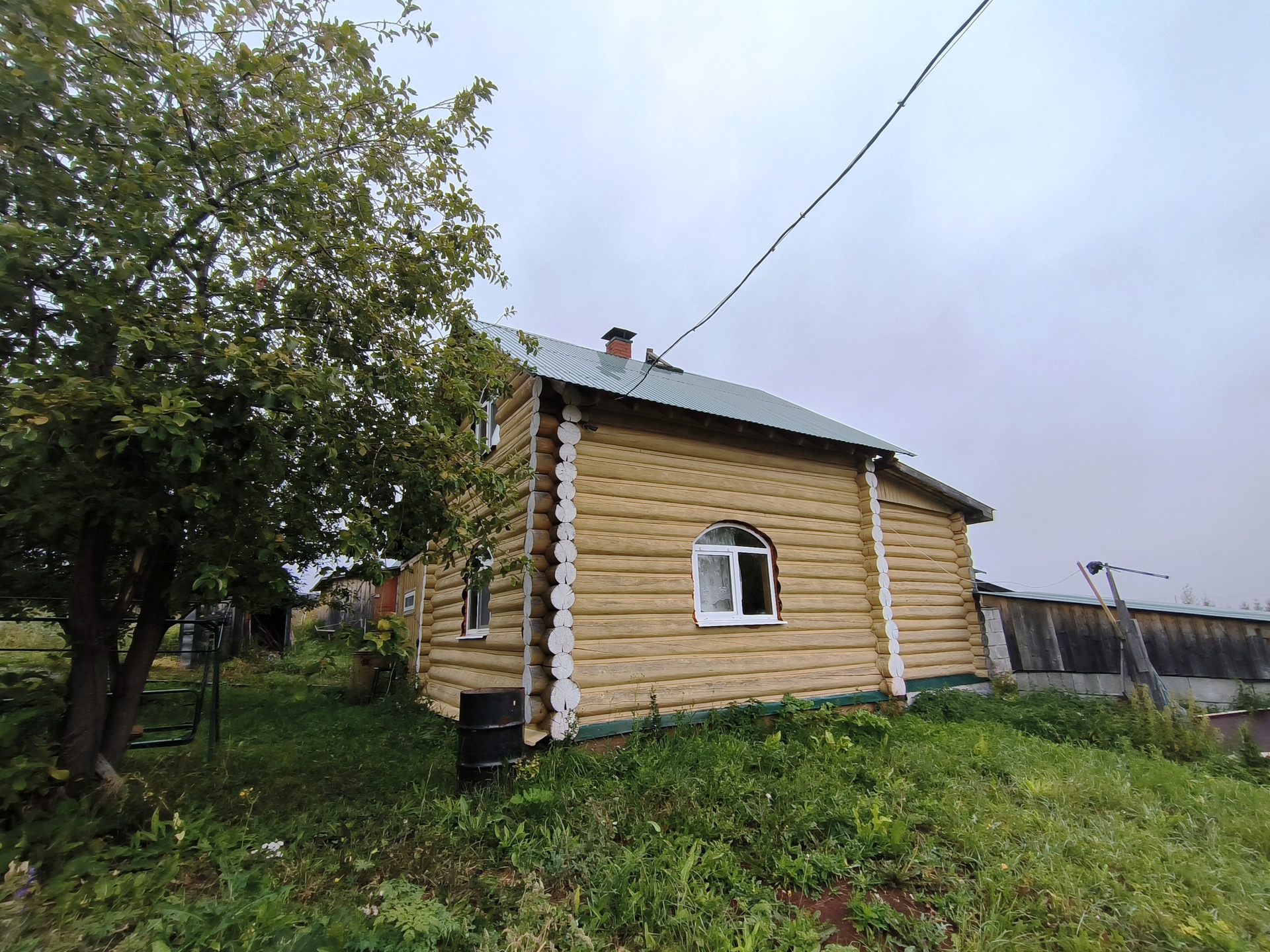 Жилой дом 2011 года постройки, из бревна 82,7 кв.м., 2 этажа. На 1 этаже - прихожая, санузел с душевой кабиной, кладовой, кухня, просторная гостиная с русской печью. На 2 этаже – спальня. Коммуникации: вода - скважина, электричество (проводка открытая), отопление – конвектор, печь, канализация – выгребная яма (септик). Дом полностью готов к проживанию круглый год.