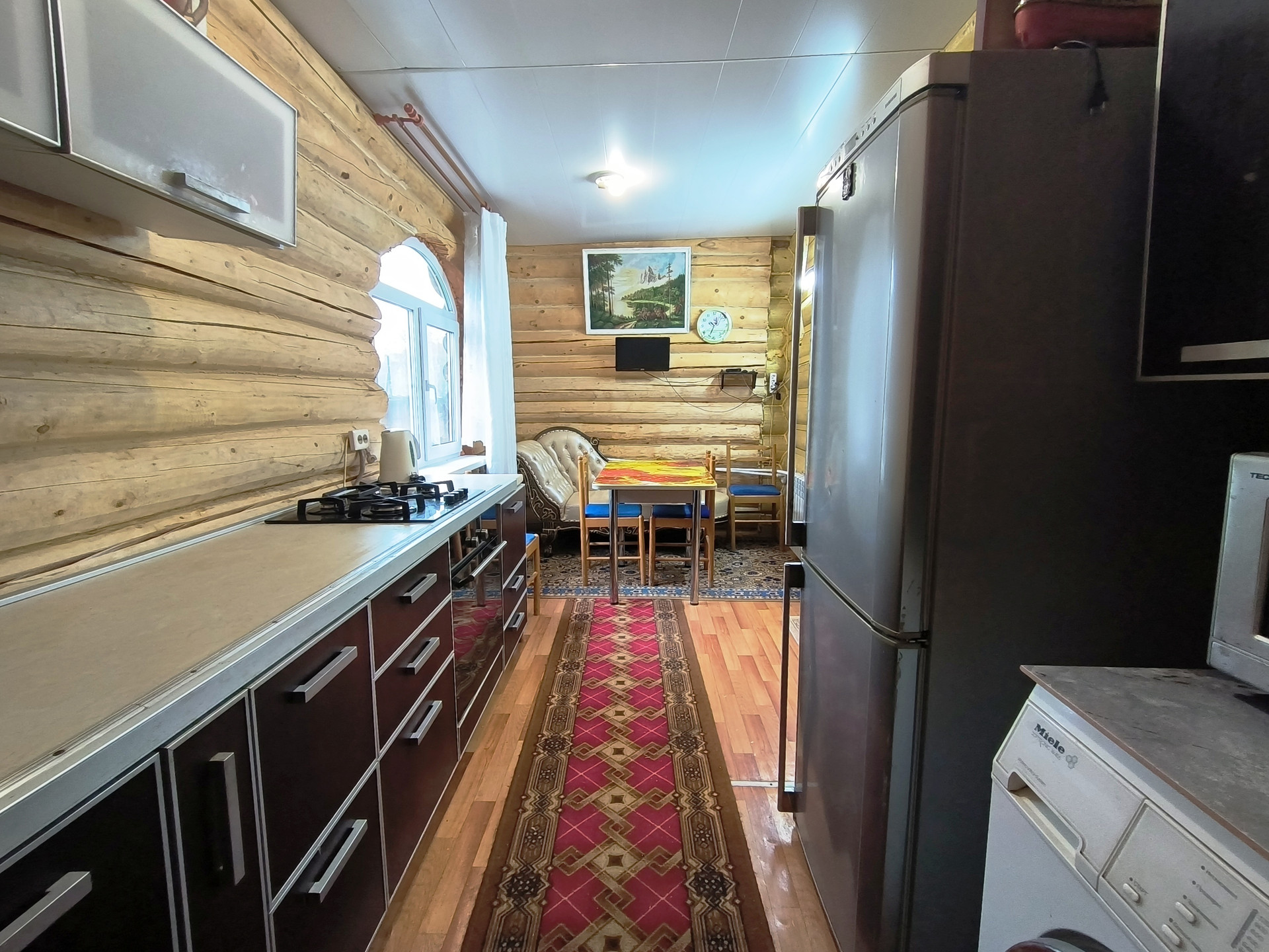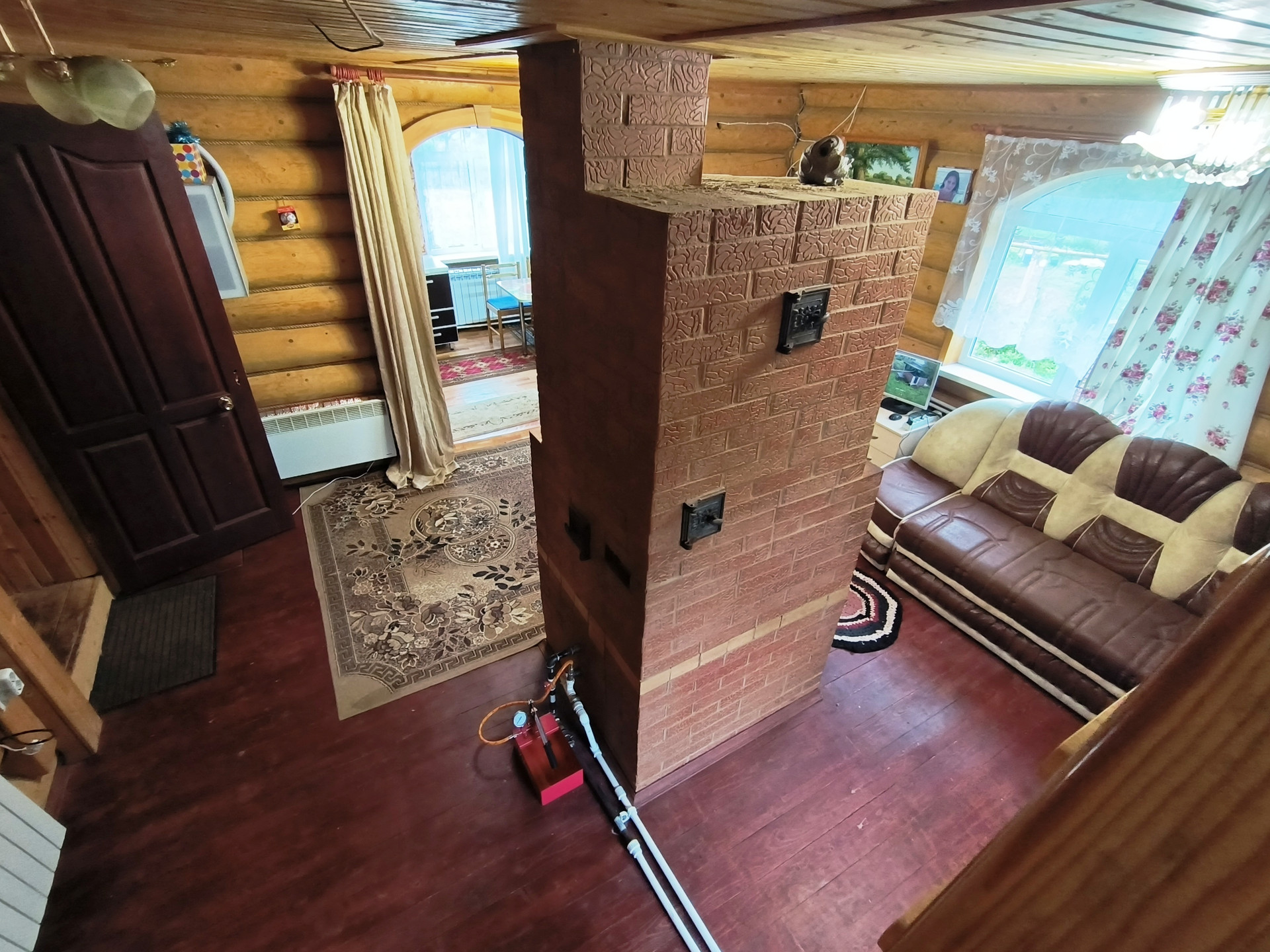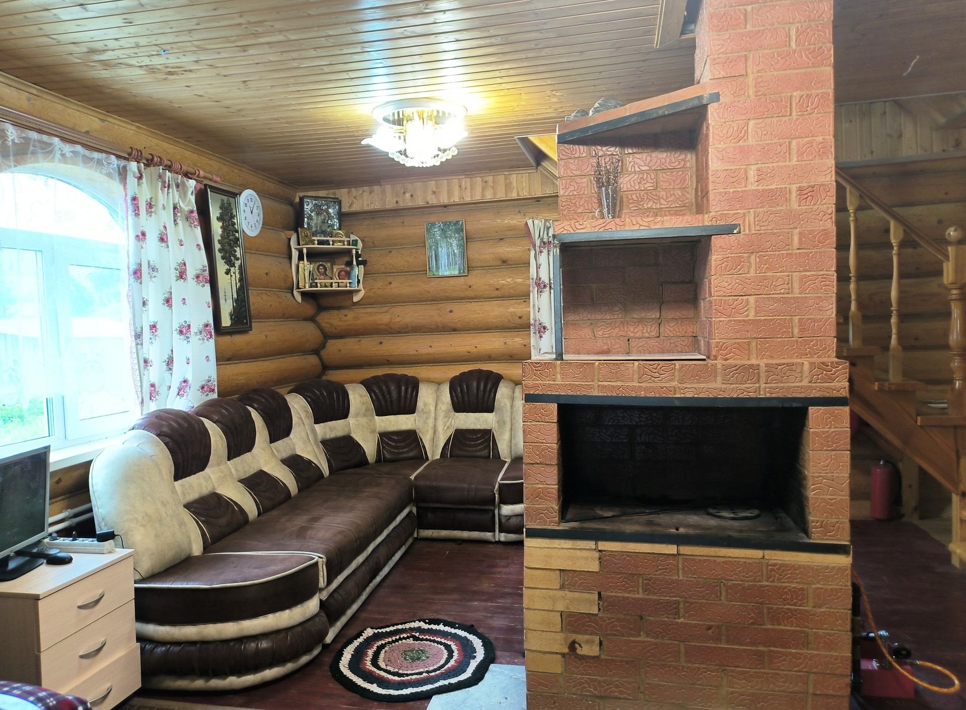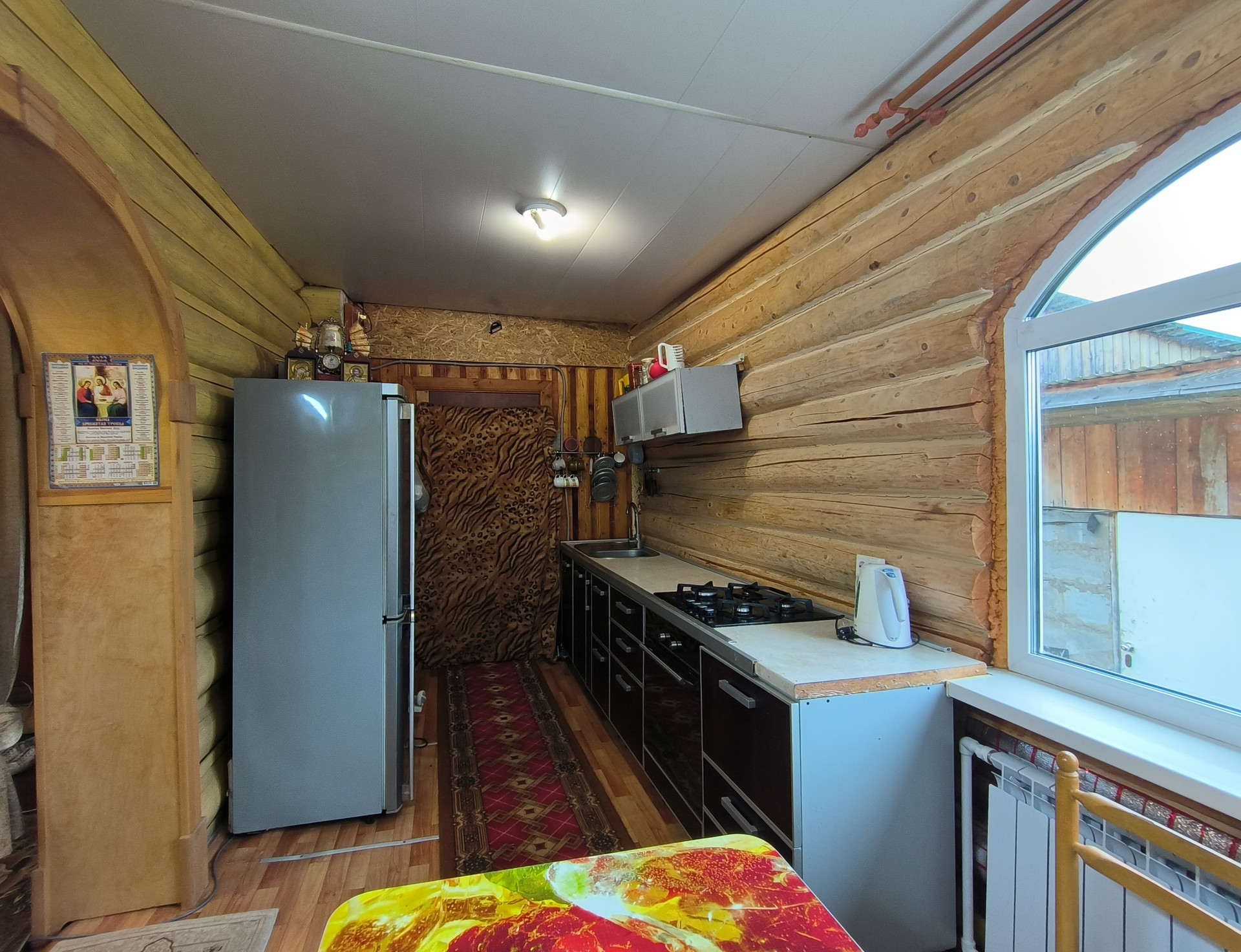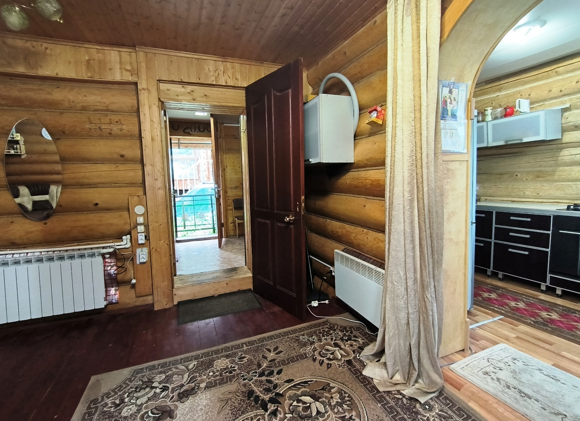 Жилой дом 2011 года постройки, из бревна 82,7 кв.м., 2 этажа. На 1 этаже - прихожая, санузел с душевой кабиной, кладовой, кухня, просторная гостиная с русской печью. На 2 этаже – спальня. Коммуникации: вода - скважина, электричество (проводка открытая), отопление – конвектор, печь, канализация – выгребная яма (септик). Дом полностью готов к проживанию круглый год.