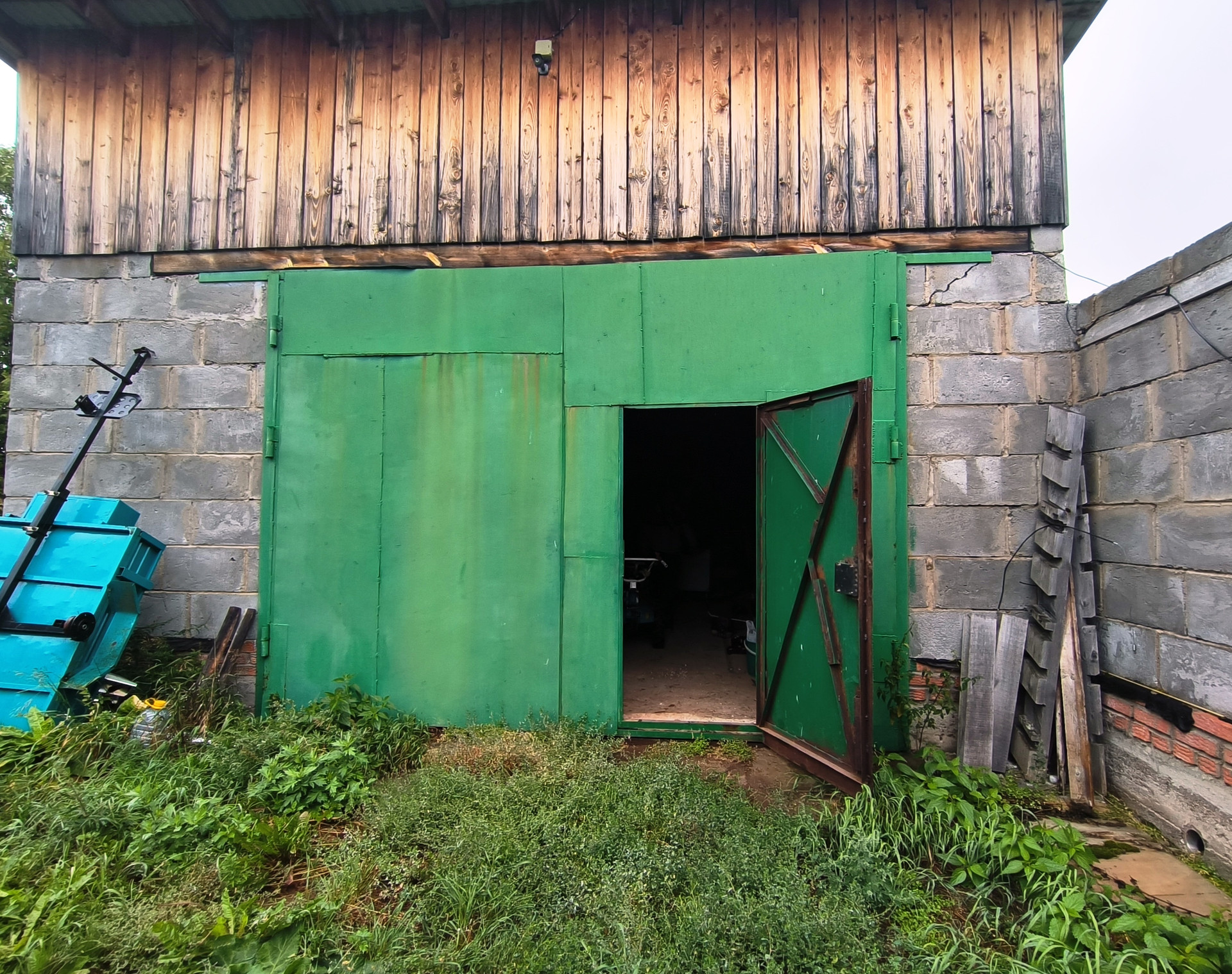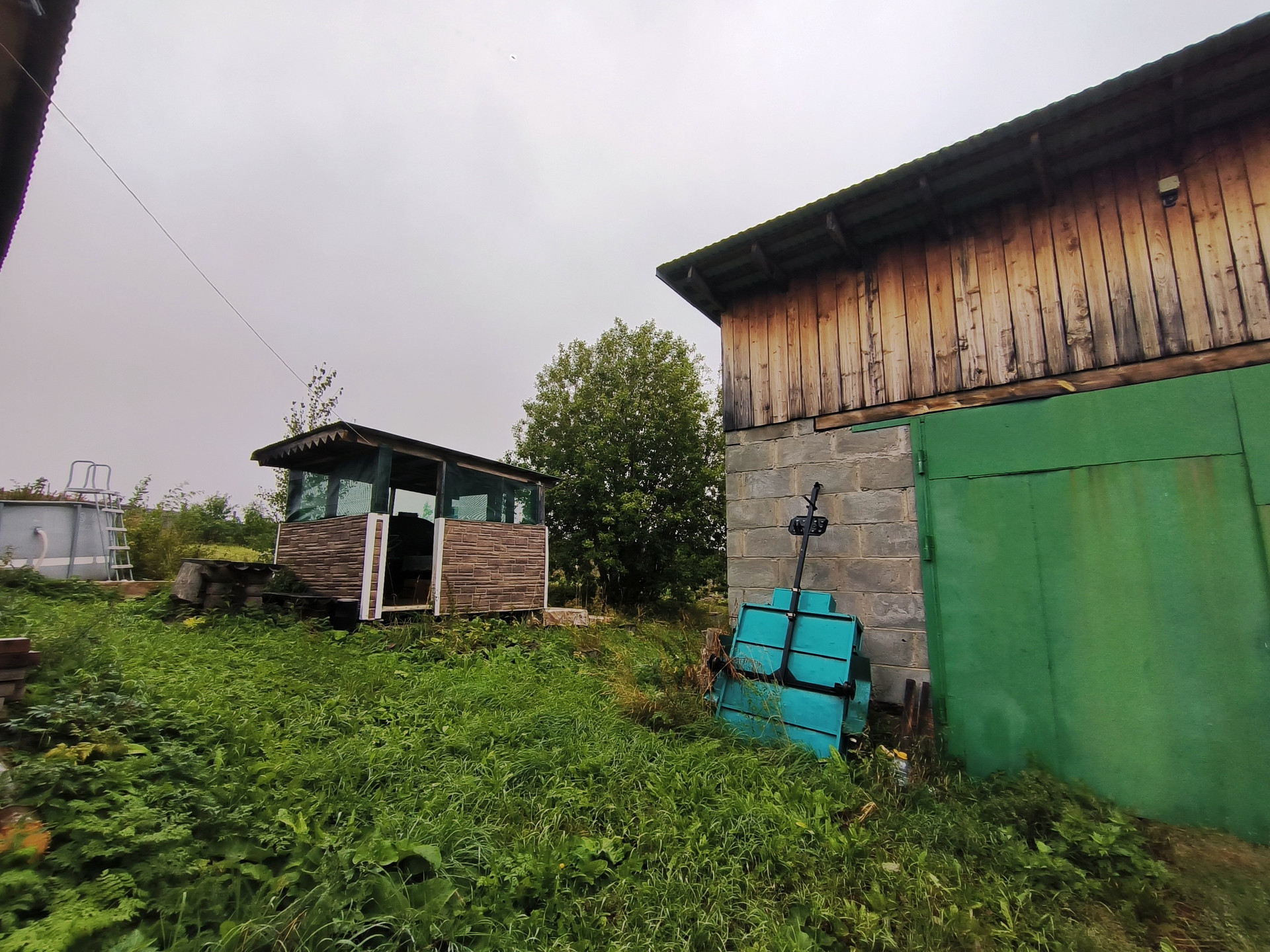 Гараж из пеноблока, высотой 5 метров. Овощная яма, беседка.