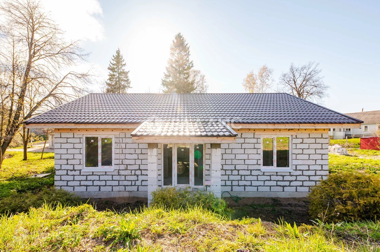 Современный и технологичный дом построен по проекту в 2023 году надежным и профессиональным строителем, одноэтажный, стены выполнены из газобетона D500 600#250#300мм, на фундаменте - монолитной плите, кровля - металлочерепица, окна - металлопластиковые стеклопакеты.