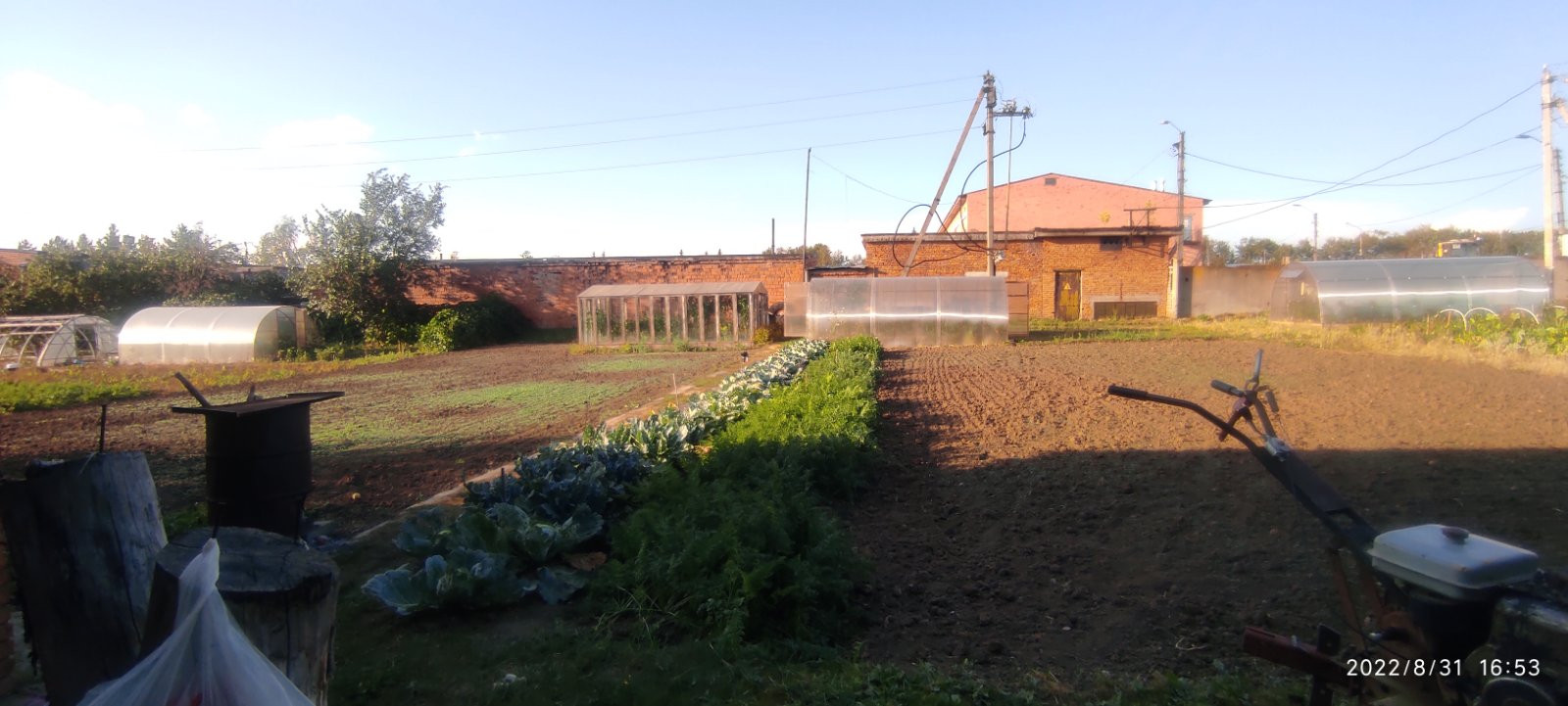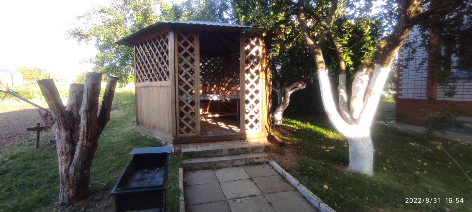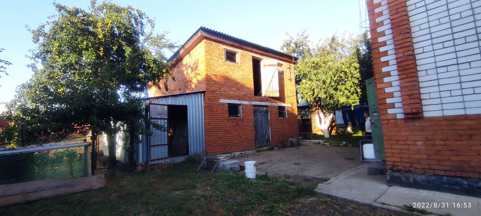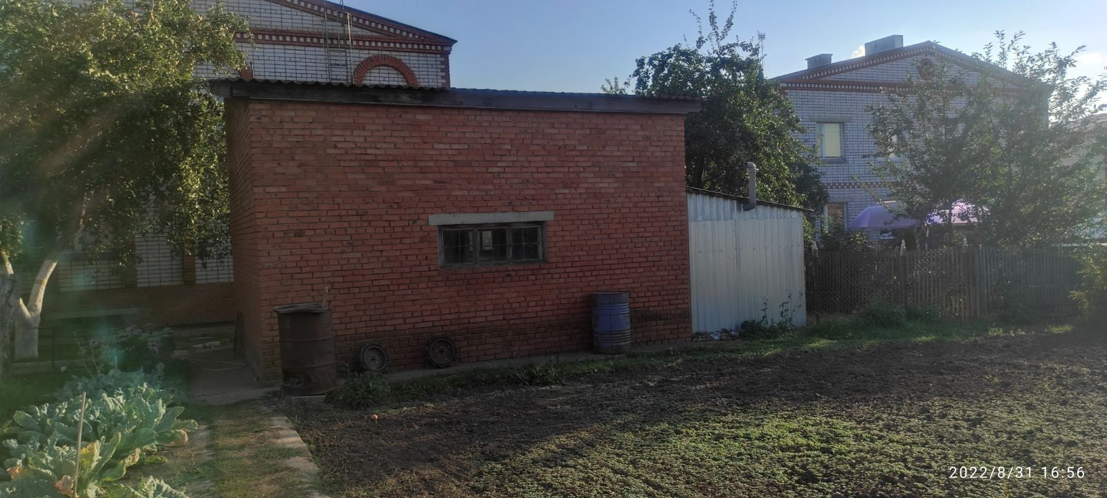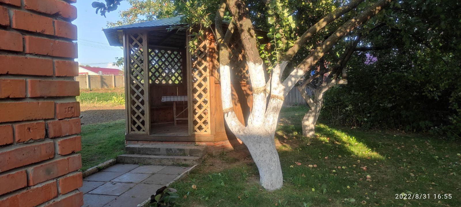На участке плодоносящий сад, большой кирпичный сарай, погреб, беседка.