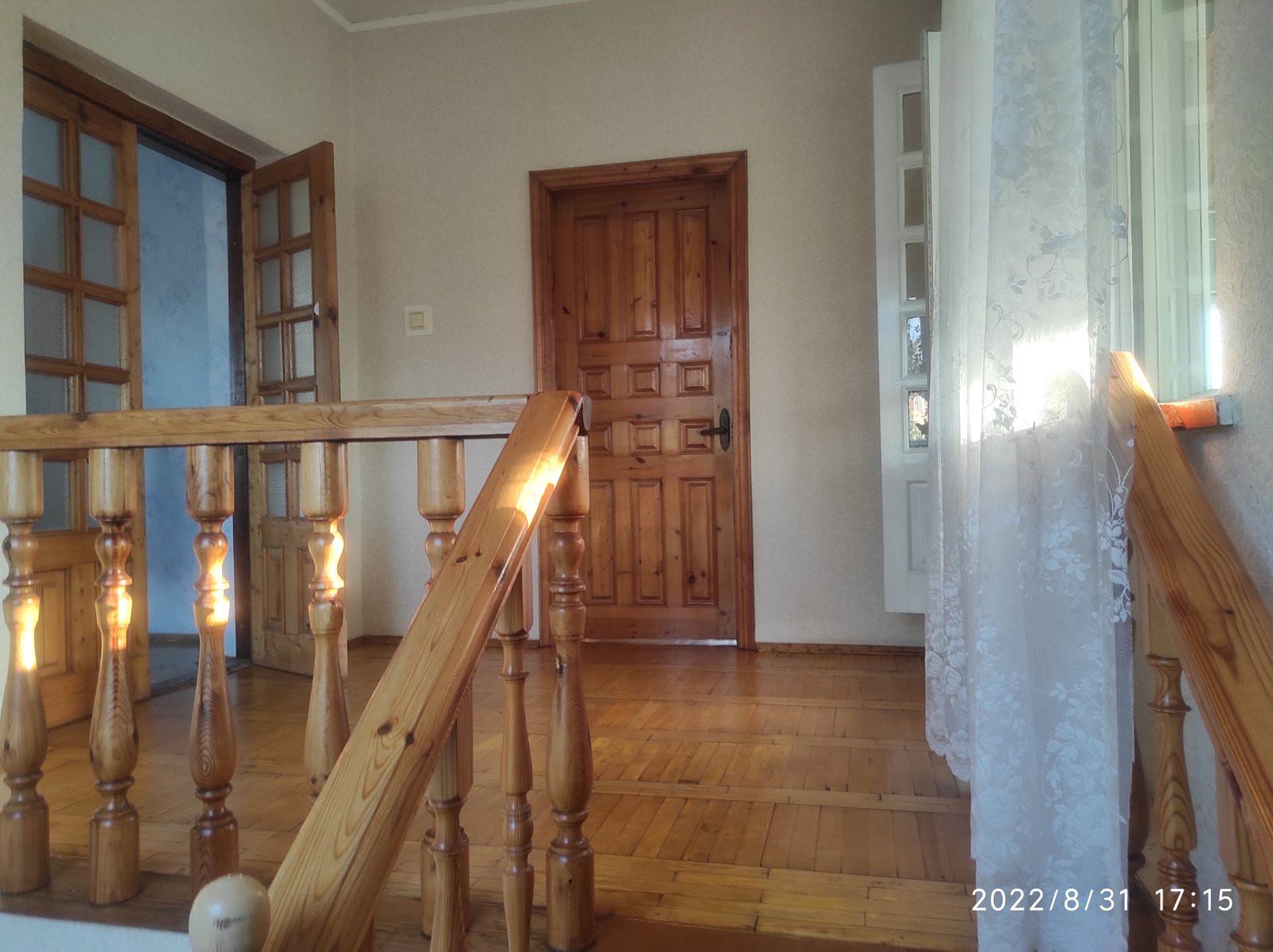На первом этажа расположены кухня, гостиная, с/у, гараж и большой холл с лестницей, ведущей на второй этаж (4 комнаты, с/у и веранда) и на цокольный этаж, где находится сауна и кладовые помещения.