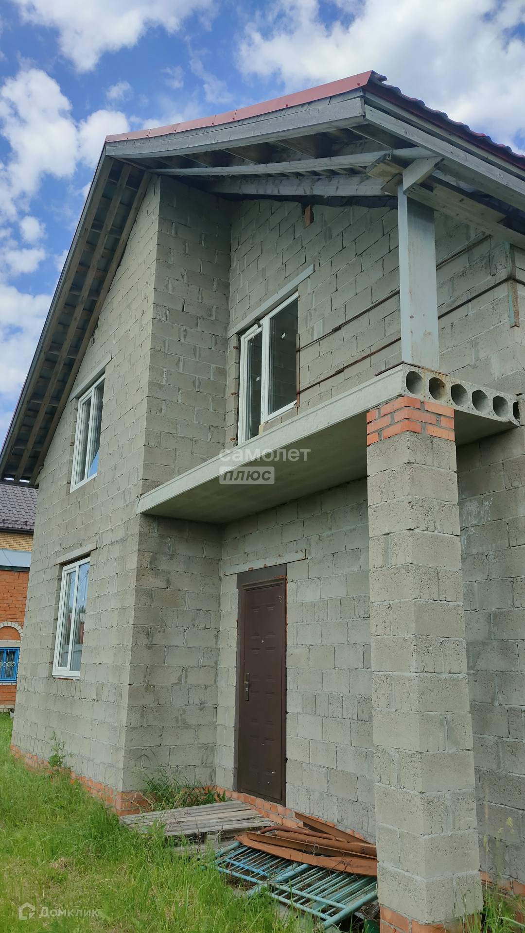 Возведен из блоков, на фундаменте. На территории находится еще один домик из кирпича, он жилой. К дому подведена вода. есть электичество, газ проходит перед домом. Подъезные пути хорошие.