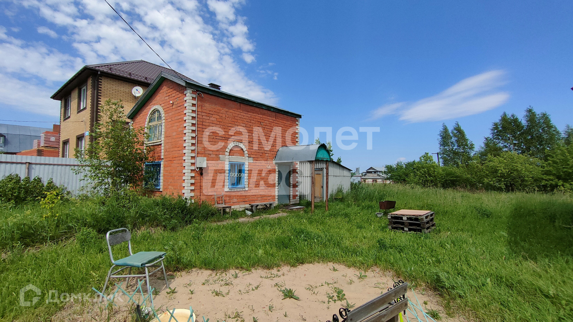 Деревня находится недалеко от города, очень большая, магазины есть, школа большая, детский сад огромный, пруд. Вокруг только  коттеджные дома. Соседние дома жилые.