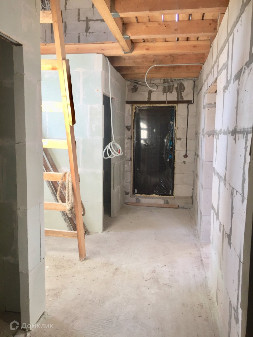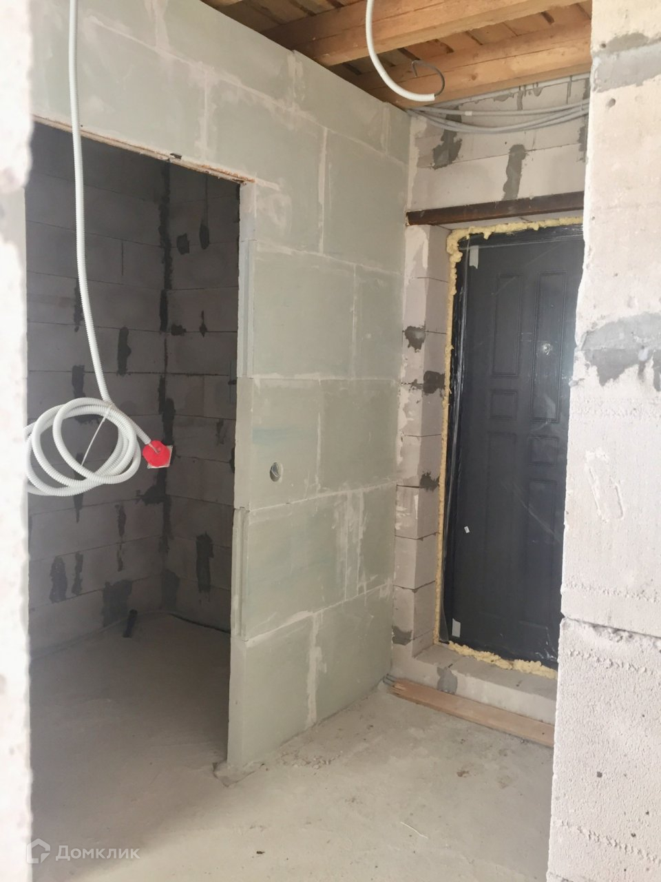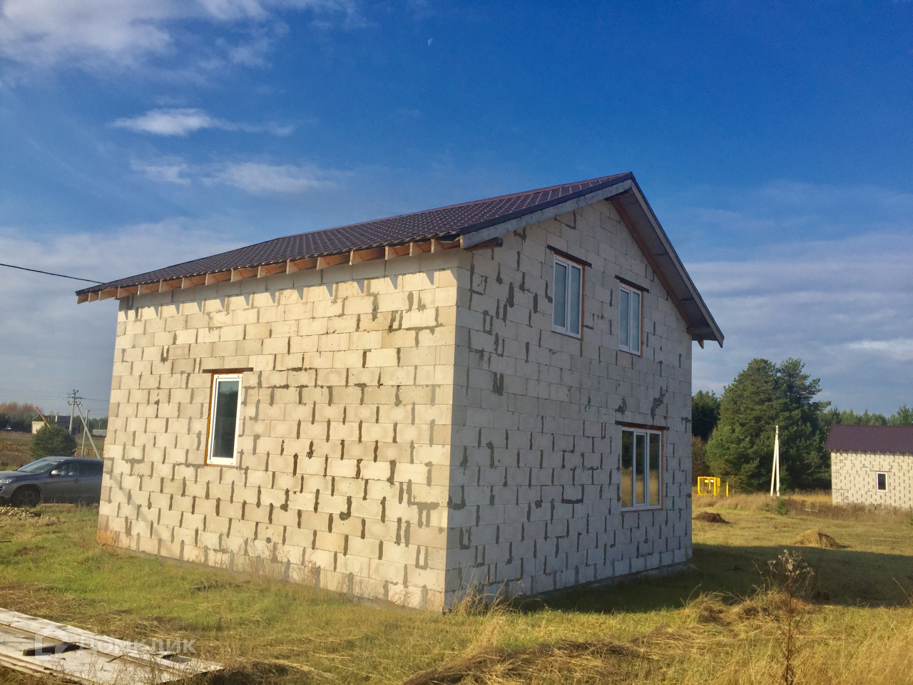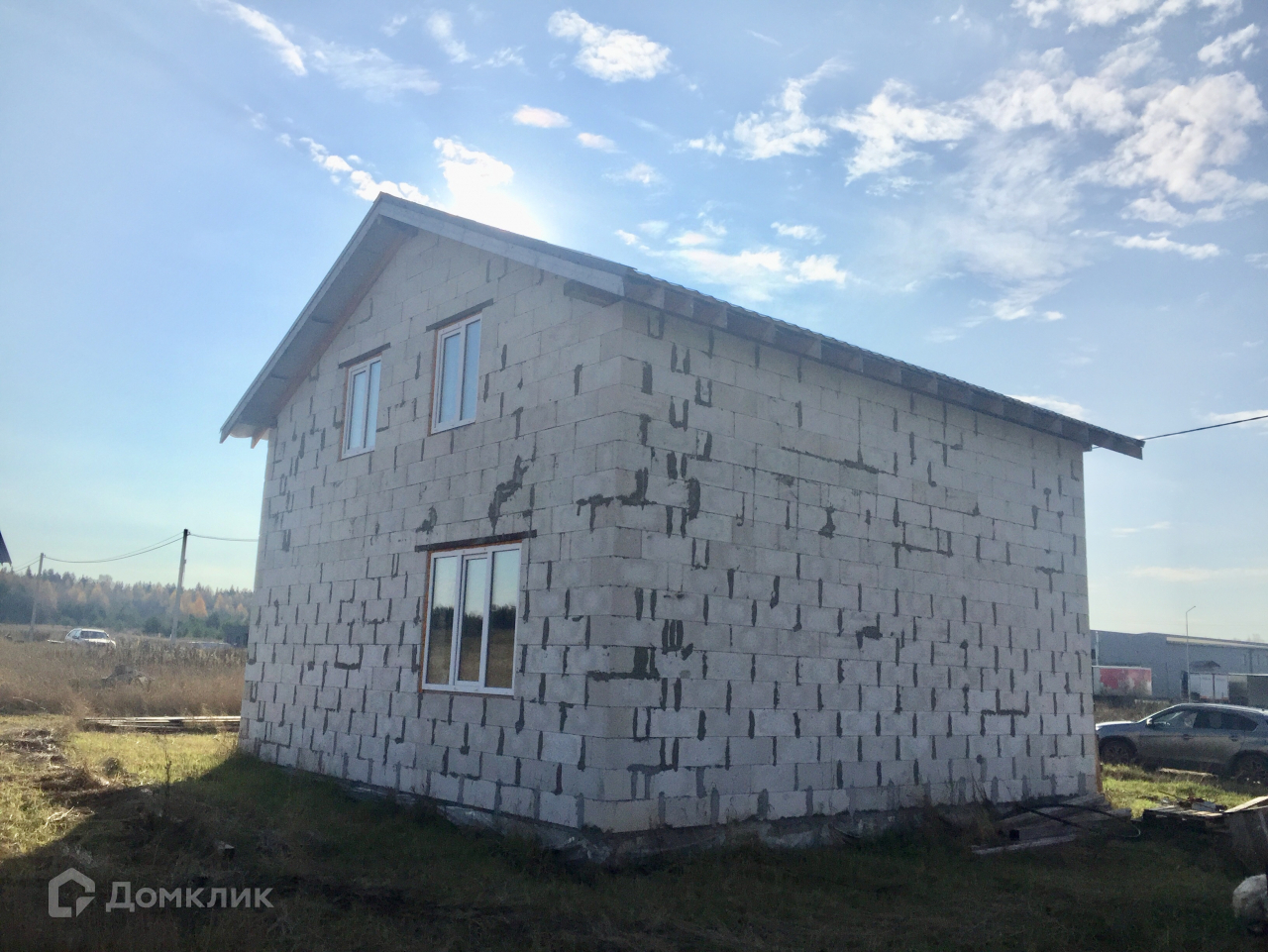 Фундамент плитный (300 мм.), стены-газосиликатный блок, крыша-металлочерепица, входная дверь- металлическая с терморазрывом, окна-пластиковые, межкомнатные перегородки первого этажа. Коммуникации заведены в дом: электричество 15 кВт (разводка по дому), скважина 30 м., канализация жб кольца. Возможен вариант предчистовой и чистовой отделки  "под заезд".  Деревня газифицирована, ГАЗ у дома (написано заявление на подвод газа к дому).