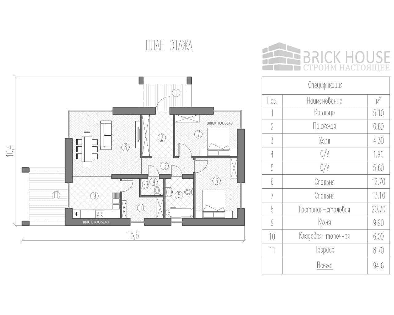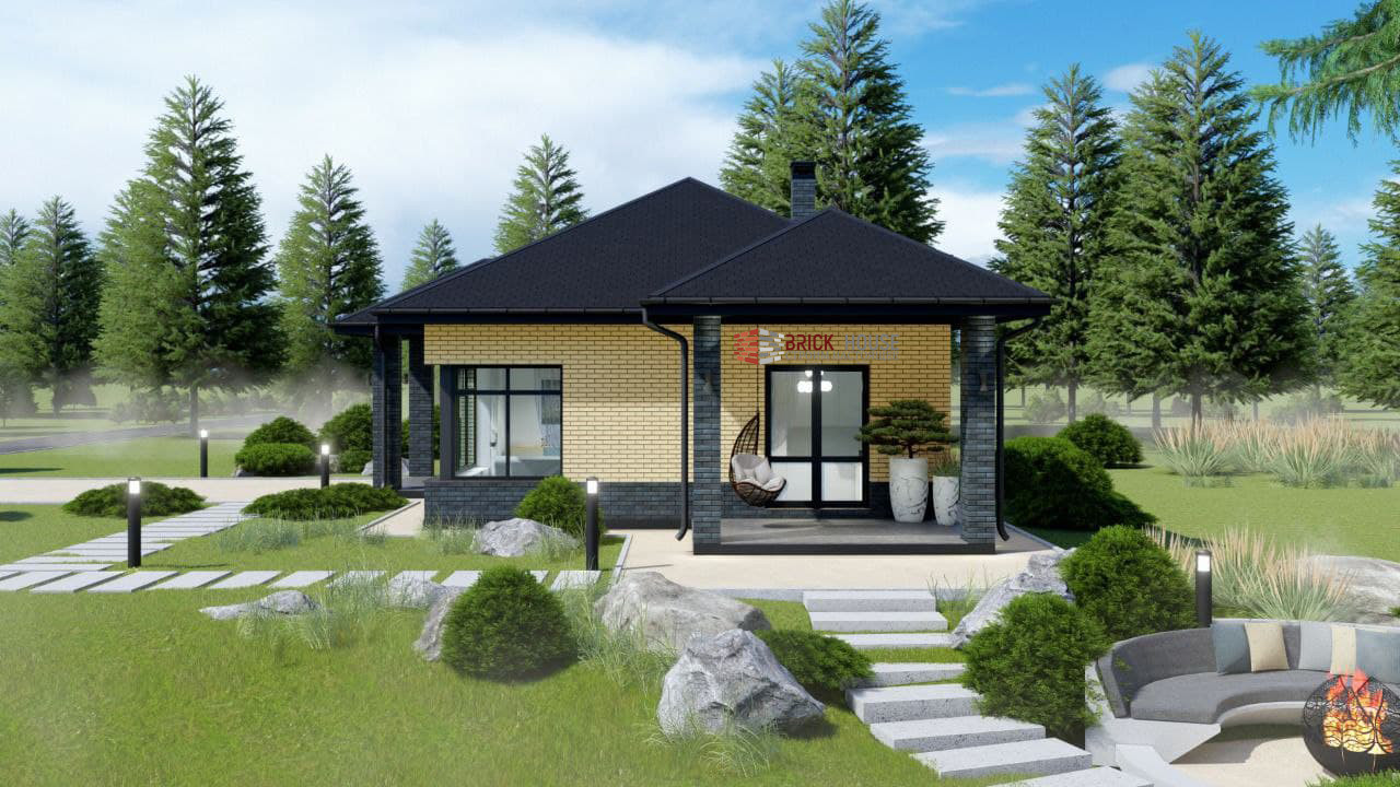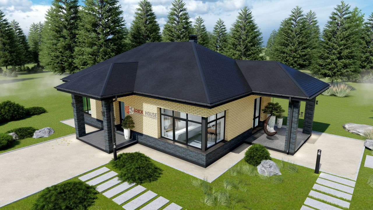 Небольшой, но уютный одноэтажный дом 94,6 м² с крыльцом и террасой, где под одной крышей есть все для комфортного проживания вашей семьи.