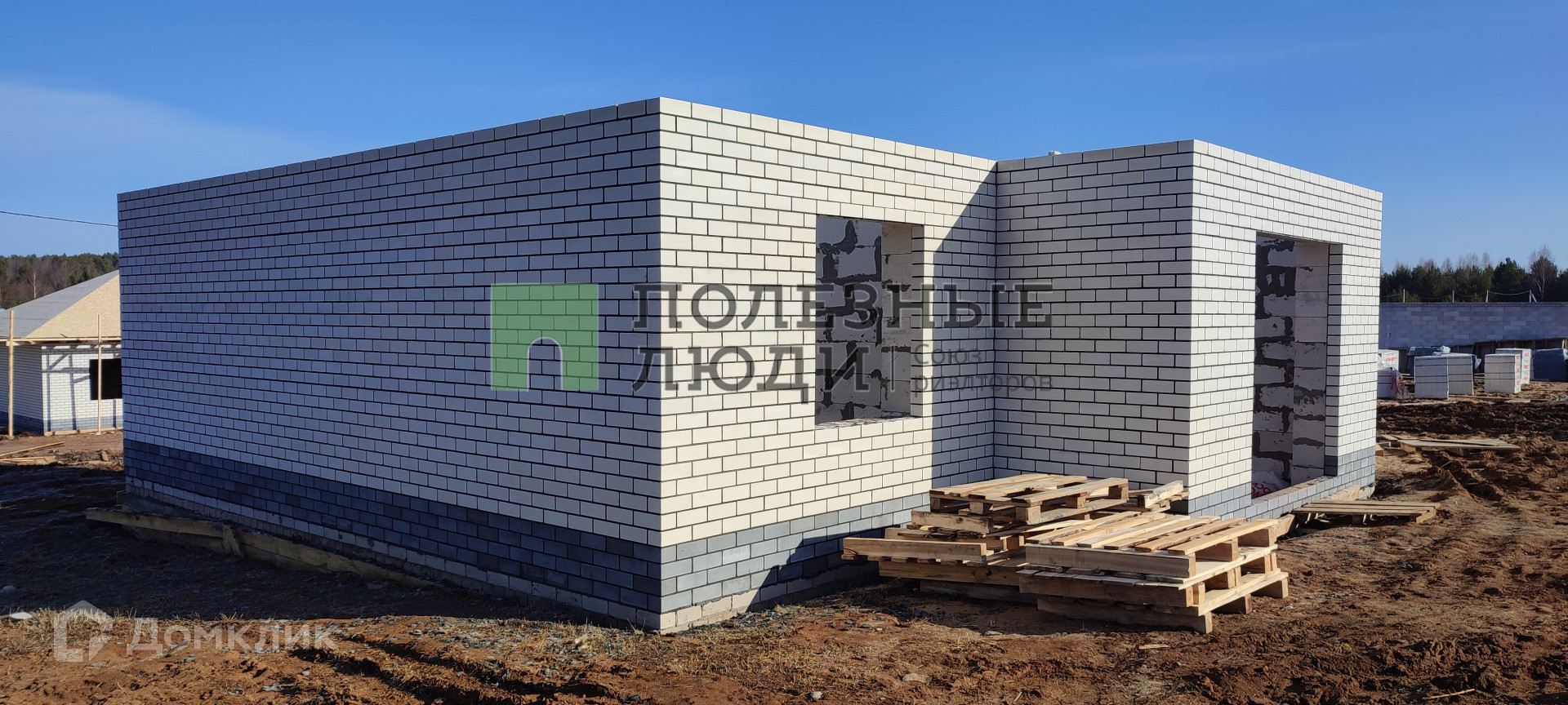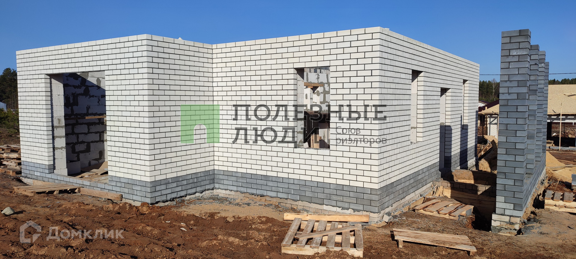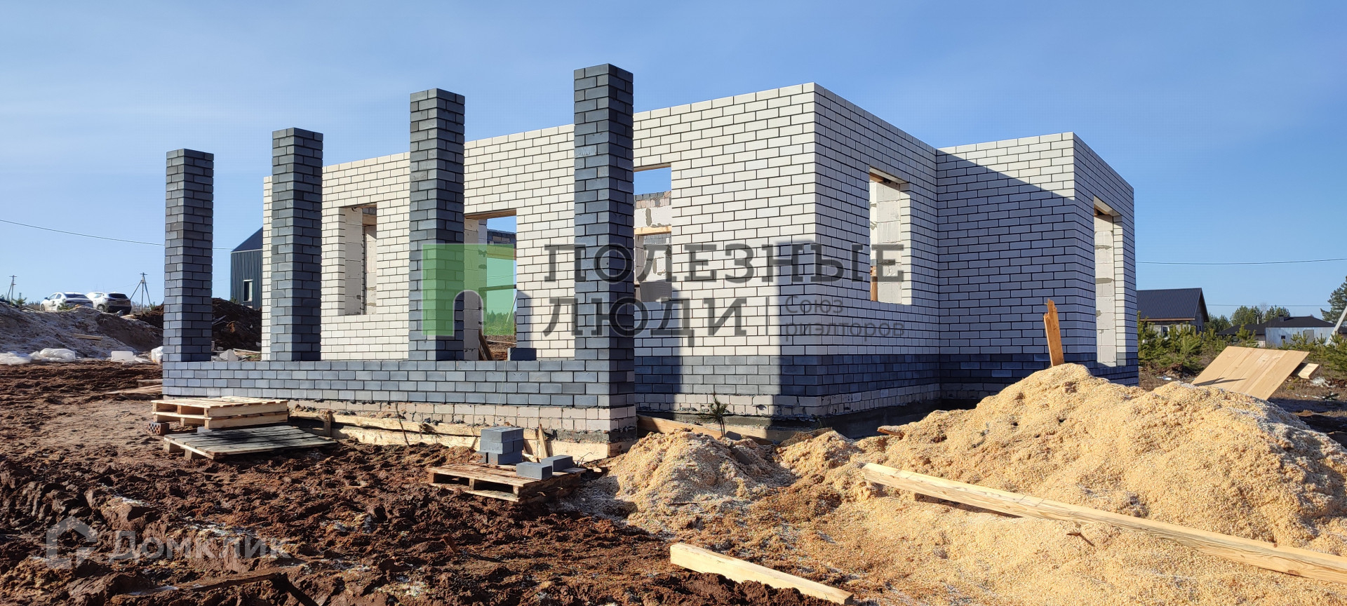 Продаю дом на этапе строительства. Дома в черновой отделке(окна пластик, дверь входная металлическая). Участок входит в стоимость. На фото пример готового дома.