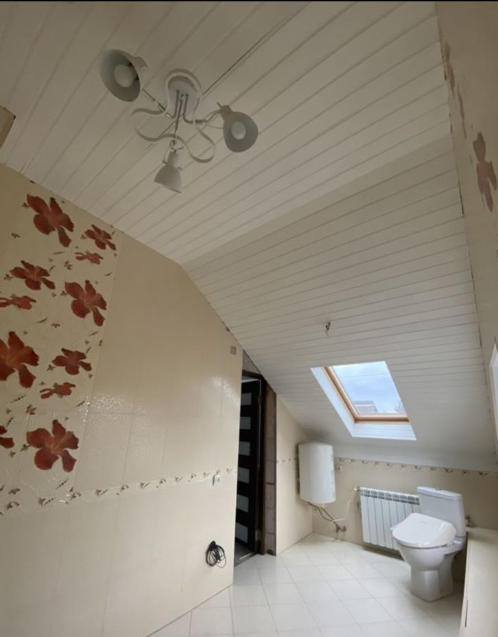 Потолки – 1,2 этаж гипсокартон, 3 этаж вагонка осина