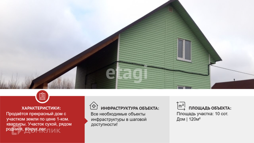 ___Тогда предлагаю к Вашему вниманию прекрасный дом с участком 10 соток земли по цене 1-ком. квартиры. Участок сухой, рядом родники, вокруг лес, дороги осыпаны гравийно-песчаной смесью. Скважину и септик доделывают, все коммуникации входят в стоимость. Вся разводка по дому сделана, электрика тоже. Очень хорошие и дружелюбные соседи.