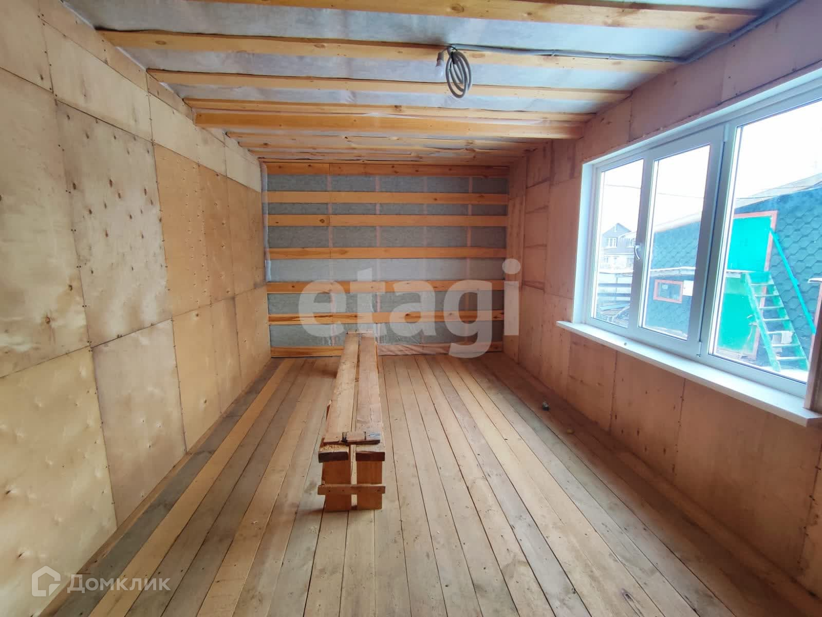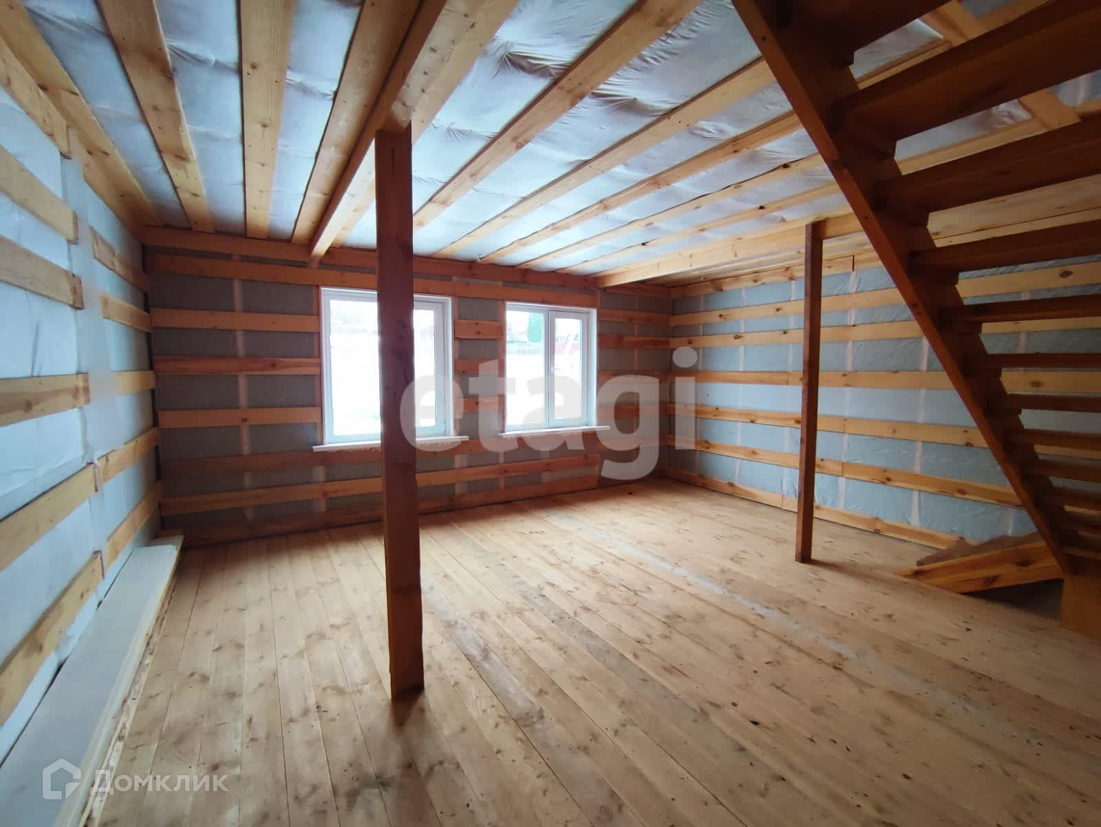 Круглогодичный удобный подъезд до самого участка. Дом двухэтажный, каркасный, без чистовой отделки, на втором этаже имеет свободную планировку.