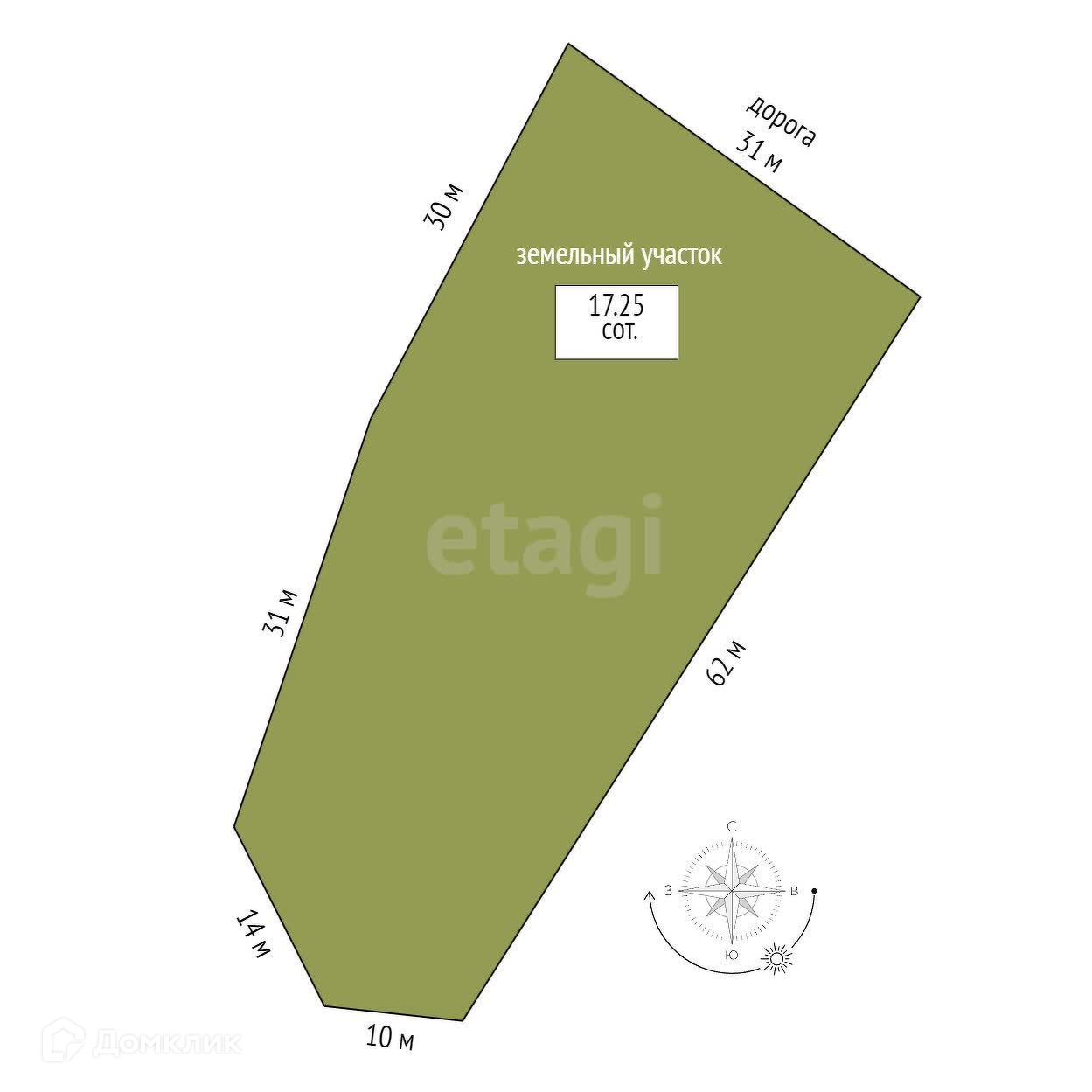 Площадь участка 17.25 сот.