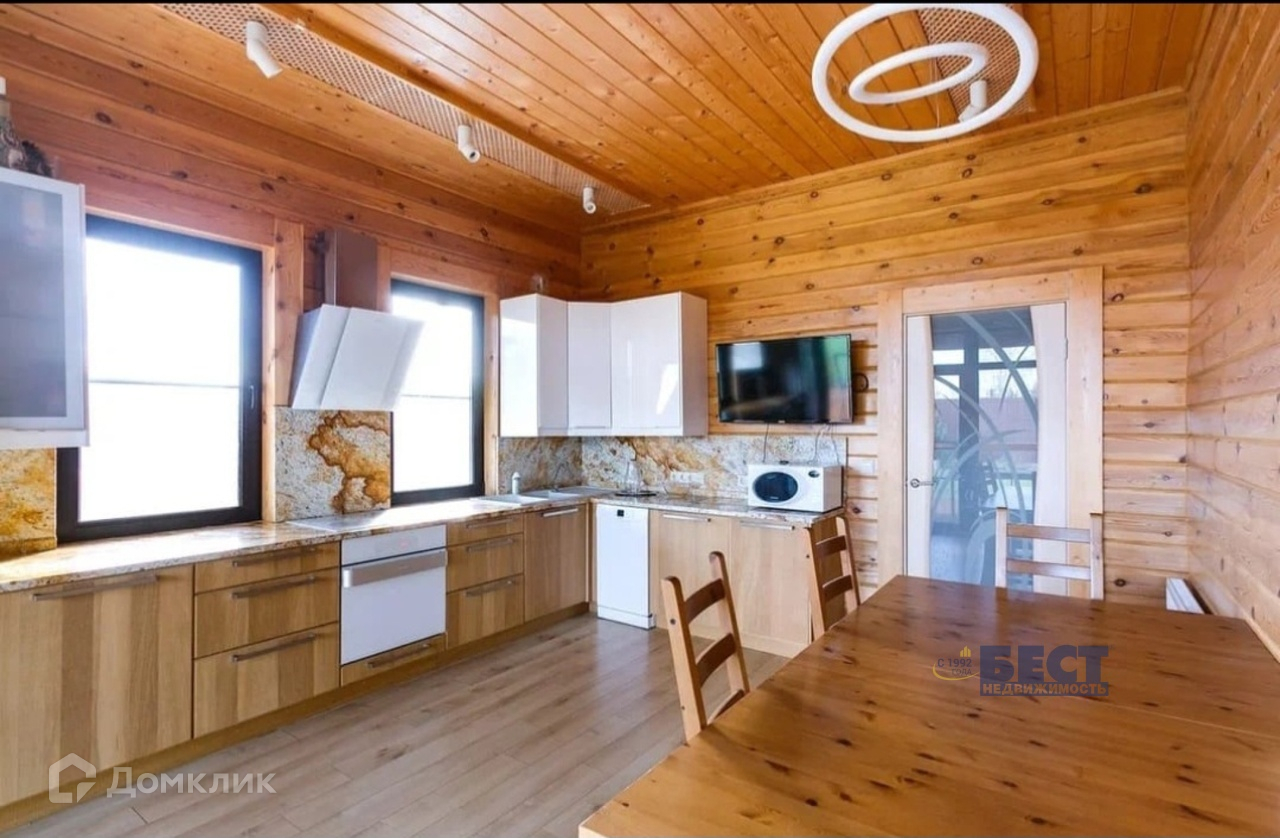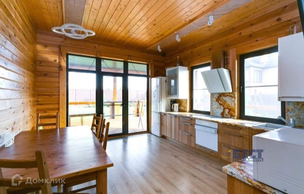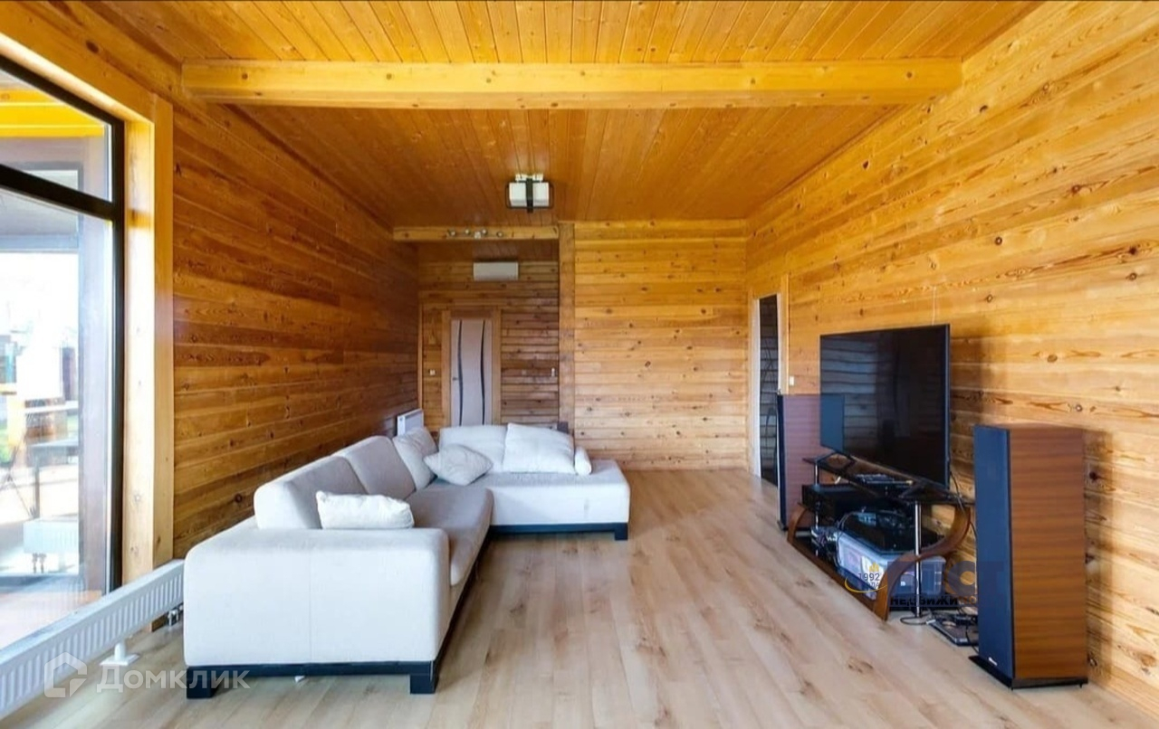 Конструктив дома: фундамент ЖБ ленточный со сваями (глубина 2 м), стены брус камерной сушки (сушка была 55 дней) толщиной 200 мм, пластиковый 2х камерный стеклопакет в окнах, с напылением на среднем стекле (даже на окнах в пол), мягкая кровля, пол террасы террасная доска из лиственницы, пол в доме или натуральный камень, или ламинат 12 мм. Высота потолка чистая 3,15 м. Большой чердак.