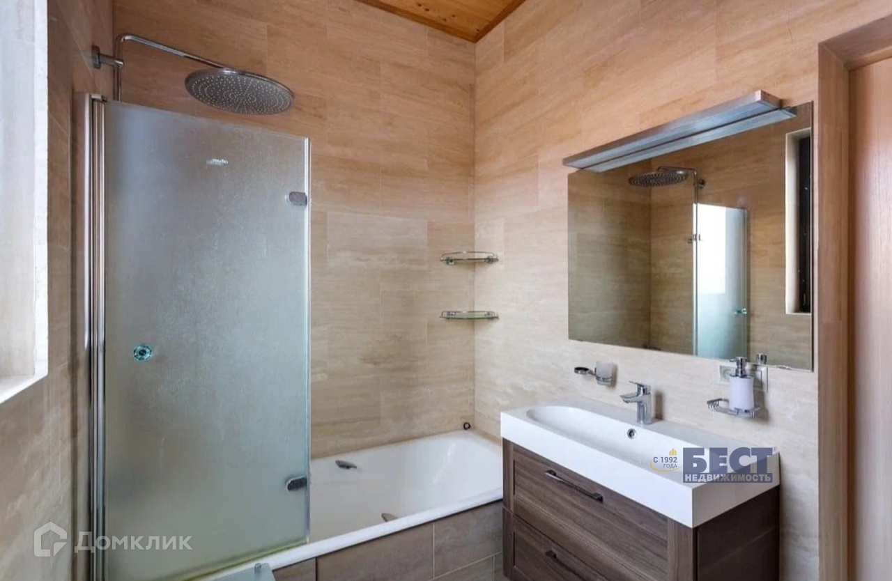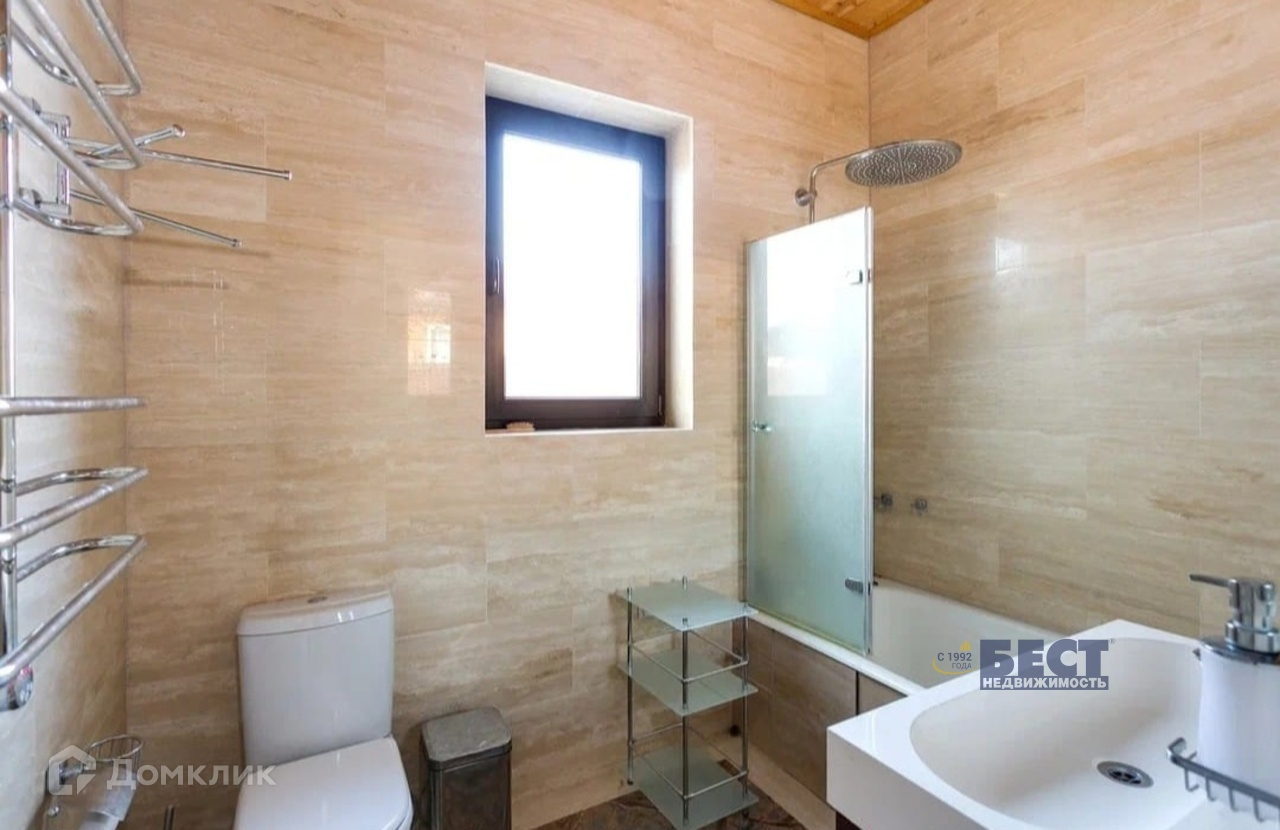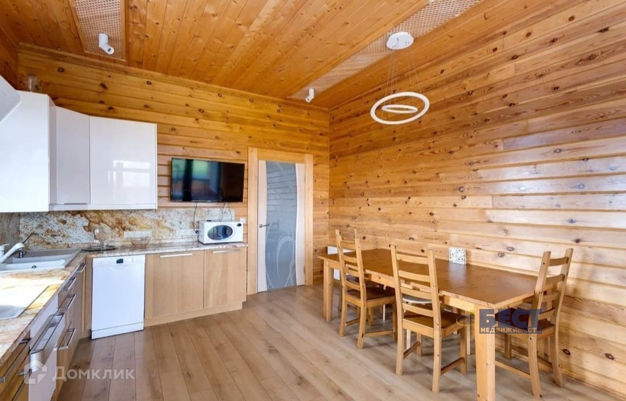 Конструктив дома: фундамент ЖБ ленточный со сваями (глубина 2 м), стены брус камерной сушки (сушка была 55 дней) толщиной 200 мм, пластиковый 2х камерный стеклопакет в окнах, с напылением на среднем стекле (даже на окнах в пол), мягкая кровля, пол террасы террасная доска из лиственницы, пол в доме или натуральный камень, или ламинат 12 мм. Высота потолка чистая 3,15 м. Большой чердак.