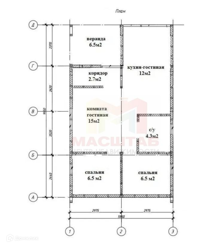 Общая площадь 54 м2