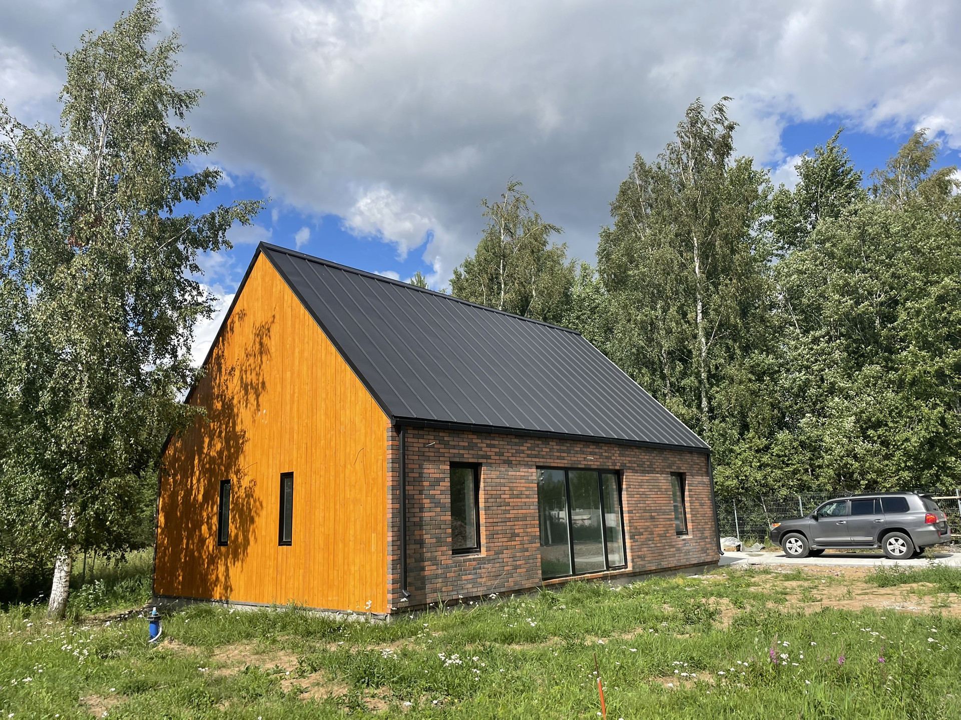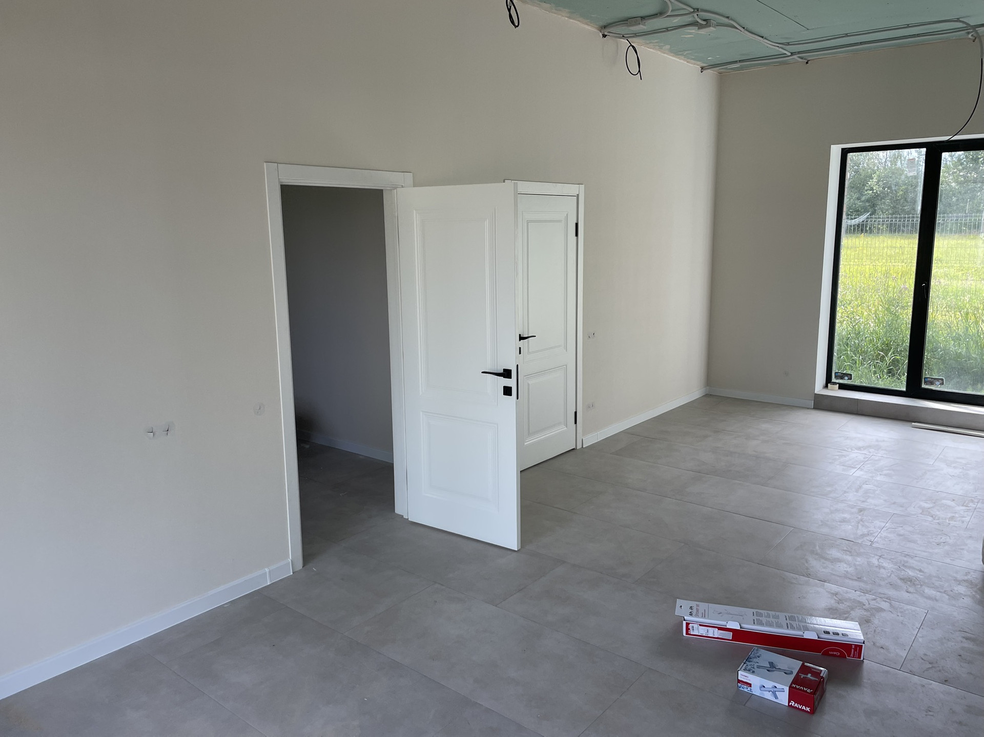 На первом этаже 3 спальни, кухня-гостиная, ванна, котельная, отделка завершена