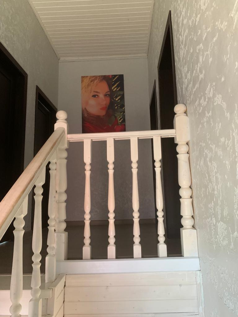 Продается жилой 2-х этажный дом общей площадью 122 м, расположенный на земельном участке 6,5 соток, в деревне Большое Новосурино. Можно использовать для постоянного проживания (есть возможность регистрации) или как дачу. Весь поселок застроен домами в едином архитектурном стиле "голландский дворик" . На первом этаже просторная 39 метровая кухня-гостиная с 3 окнами (можно пристроить снаружи террасу и сделать дополнительный выход), холл 9 метров, ванная комната с окном, туалет, гардеробная, бойлерная, застекленная и утепленная терраса, под лестницей на 2 этаж оборудована кладовка. На втором этаже 3 спальни и 5 метровая ванная комната с окном, душевой кабиной и унитазом, Выполнен качественный ремонт - стены в гостиной под покраску, окрашены немецкой моющейся краской. Все спальни оклеены дизайнерскими обоями. Холл первого этажа, лестничные пролеты и холл 2-го этажа покрыты фактурной износостойкой штукатуркой. На полу немецкий ламинат. Ремонт выполнен в спокойных пастельных тонах. Дом теплый и светлый, в хорошем жилом состоянии и полностью готов к заселению. Построен на ленточном фундаменте, стены из газобетонных блоков, крыша металлочерепица. Перекрытия железобетонные, на первом этаже утепленные трехслойные деревянные полы, потолки обиты деревянной облицовкой. Электроэнергия по тарифам сельской местности, водоснабжение - скважина, канализация Септик Топас на 6 персон, газ подключён и заведен в дом, отопление двух-контурный котел на 24 Кв, биметаллические обогреватели во всех жилых и подсобных помещениях. Снаружи дом облицован деревянной окрашенной доской. По всему периметру установлен забор из металопрофиля. К дому можно подъехать с двух сторон - со стороны улицы установлены электрические откатные ворота, с обратной стороны, по проселочной дороге, обычные распашные ворота, через них можно завозить на участок дополнительные материалы или грузы. С тыльной стороны участка установлен металлический гараж. Уложена брусчатка вокруг дома и в зоне парковки на 3 машины. Из окон дома открываются живописный виды на поля и перелески. Перед домом ухоженный газон, высажено много цветов, за домом теплица, грядки, посажены кустарники и деревья, клубника, проведен большой объем работ по очистке и обработке земли. Земля хорошо плодоносит. Во многих домах поселка постоянно проживают, некоторые используются под дачи, много детей, рядом с домом детская площадка. все соседи дружные и общительные. Магазин Магнит, школа Лидер, детский сад 8 - 10 минут пешком.