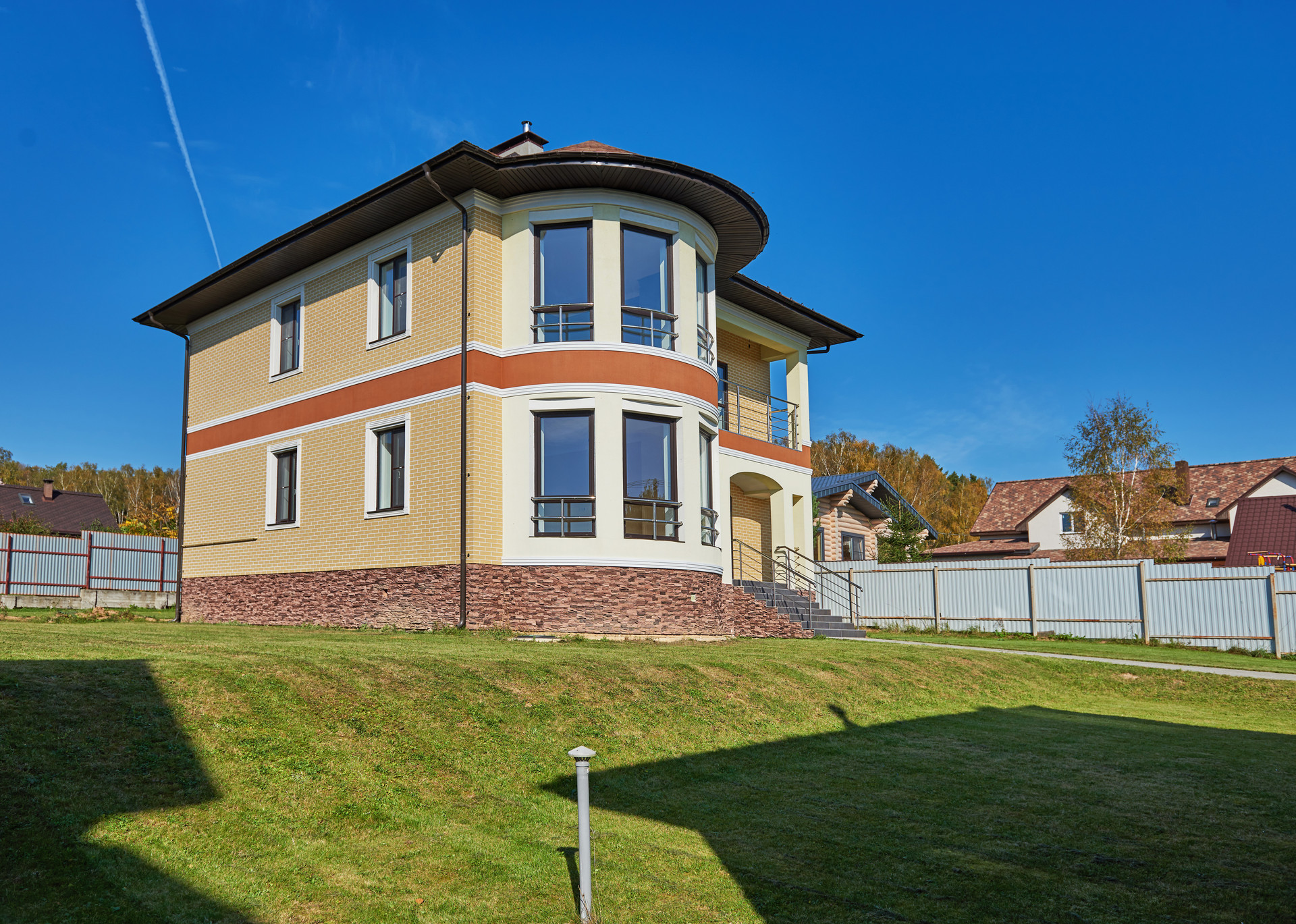 Снаружи дом отделан клинкерной плиткой. Лестница на второй этаж - бетон. Внутри сделана чистовая отделка, есть кухня со встроенной техникой, подключен газ. Материал крыши - мягкая кровля. Общая площадь дома: 200 метров квадратных + мансардный этаж.