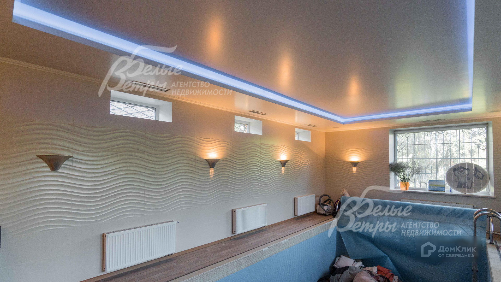 Внутренняя отделка: дорогостоящая отделка в современном стиле с преобладанием спокойных тонов выполнена из высококачественных материалов. Стены покрашены, в спальных - обои, в санузлах - плитка (Италия), в хаммаме - мозайка. Все ведущих брендов. Пол - доска массив дуба, в мастер-спальне массив полисандр, в коридоре и в санузлах - керамогранит с водяным подогревом, в хаммаме на полу травертин, в бассейне - палубная доска тик. Лестница широкая монолитная, отделана деревом. Перила и поручни деревянные. Потолки подвесные ГКЛ, окрашены, со встроенными светильниками, с подкарнизным освещением. Установлена дизайнерская сантехника ArtCeram, стеклянные раковины, джакузи. В доме все коммуникации разведены (разводка в котельной медью). Радиаторы стальные. Двери межкомнатные шпонированные. Входная дверь - трёхстворчатая..
