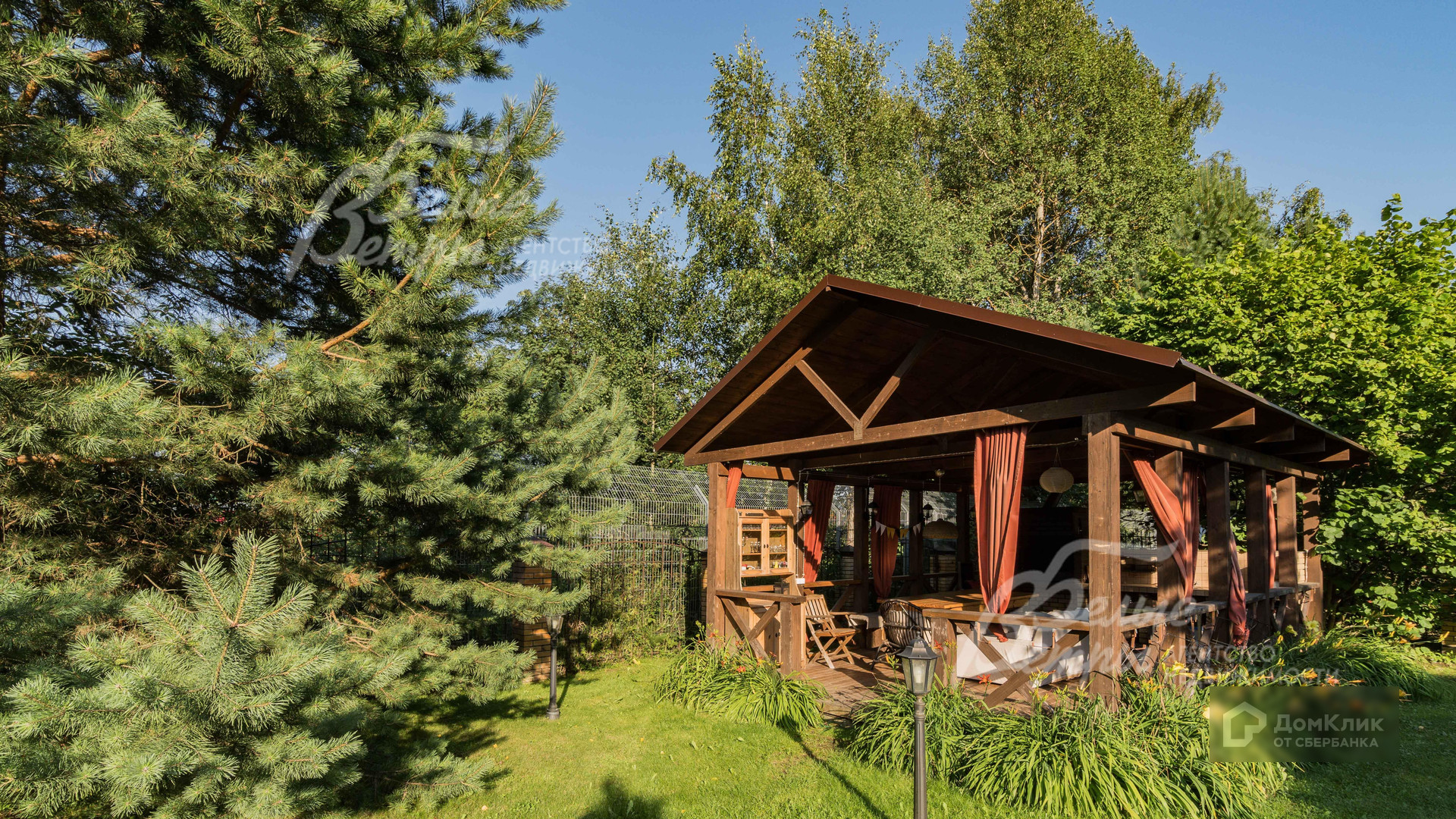 - летняя деревянная беседка 27,5 кв.м с зоной барбекю, с водой и канализацией (размер 6,6х7х4,23 м;
