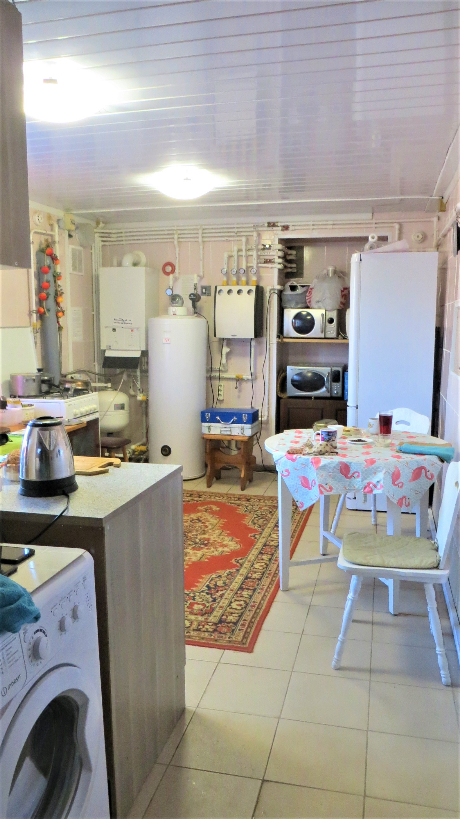 Все коммуникации заведены в дом и находятся в рабочем состоянии: магистральный газ, центральный водопровод, канализация переливной септик 9 колодцев, эл-во 9 квт 380 Вт.